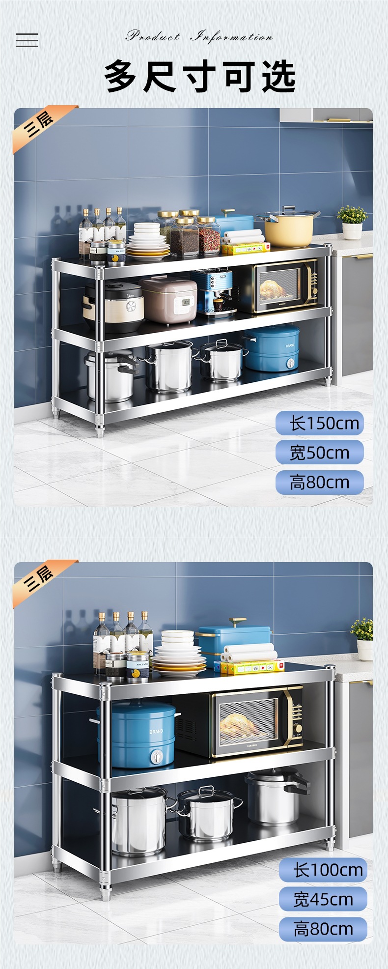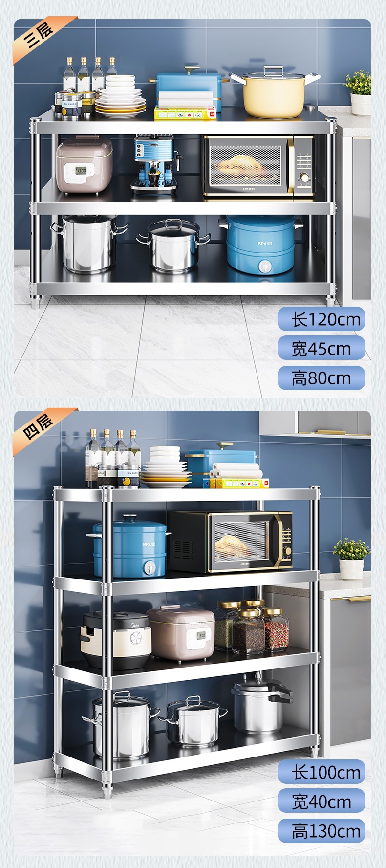 주방 랙 캐비닛 스테인레스 스틸 선반 캐비닛 다기능 스토리지 가정용 스토브 랙 바닥 스탠딩 전자 레인지 랙