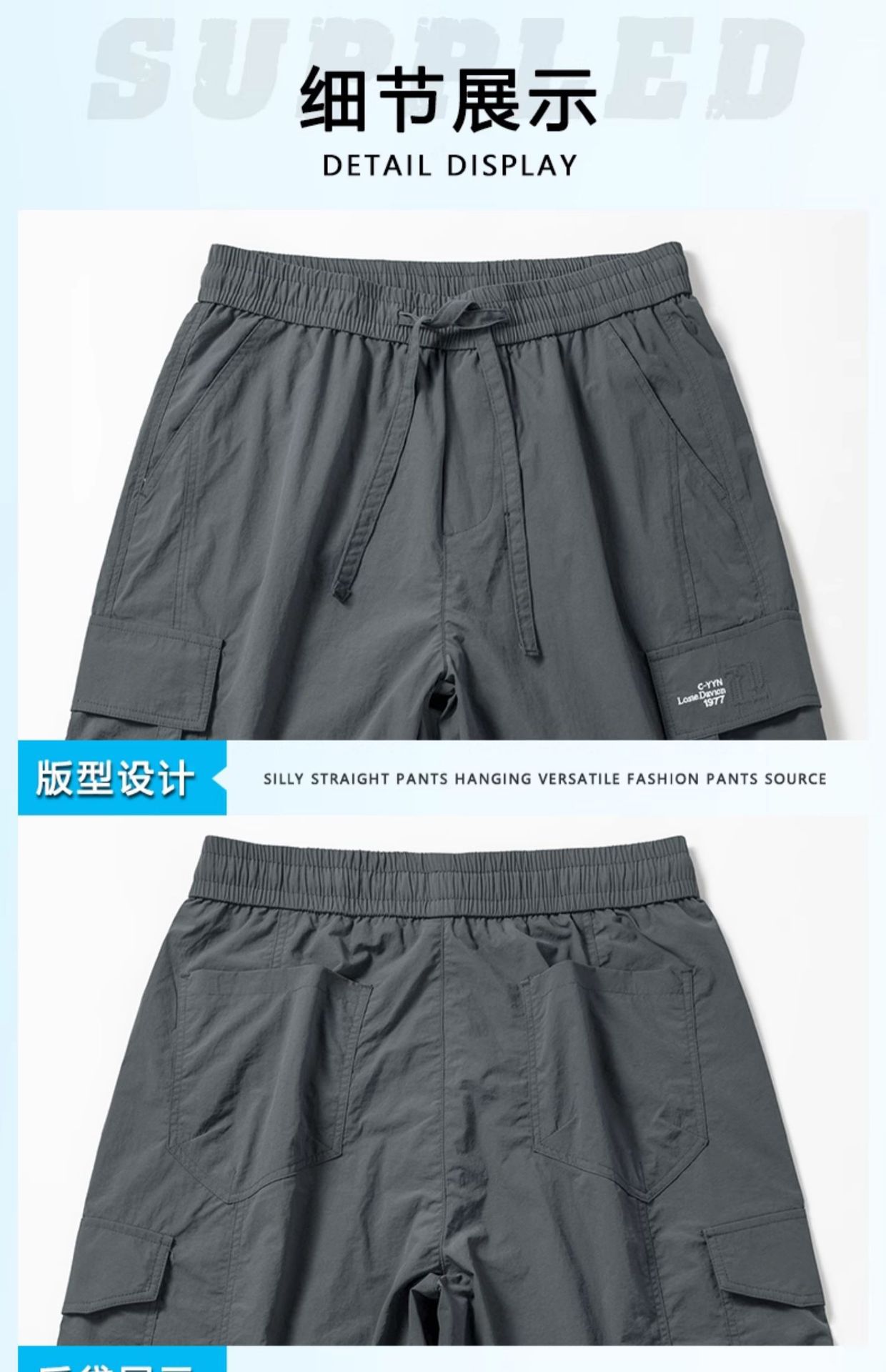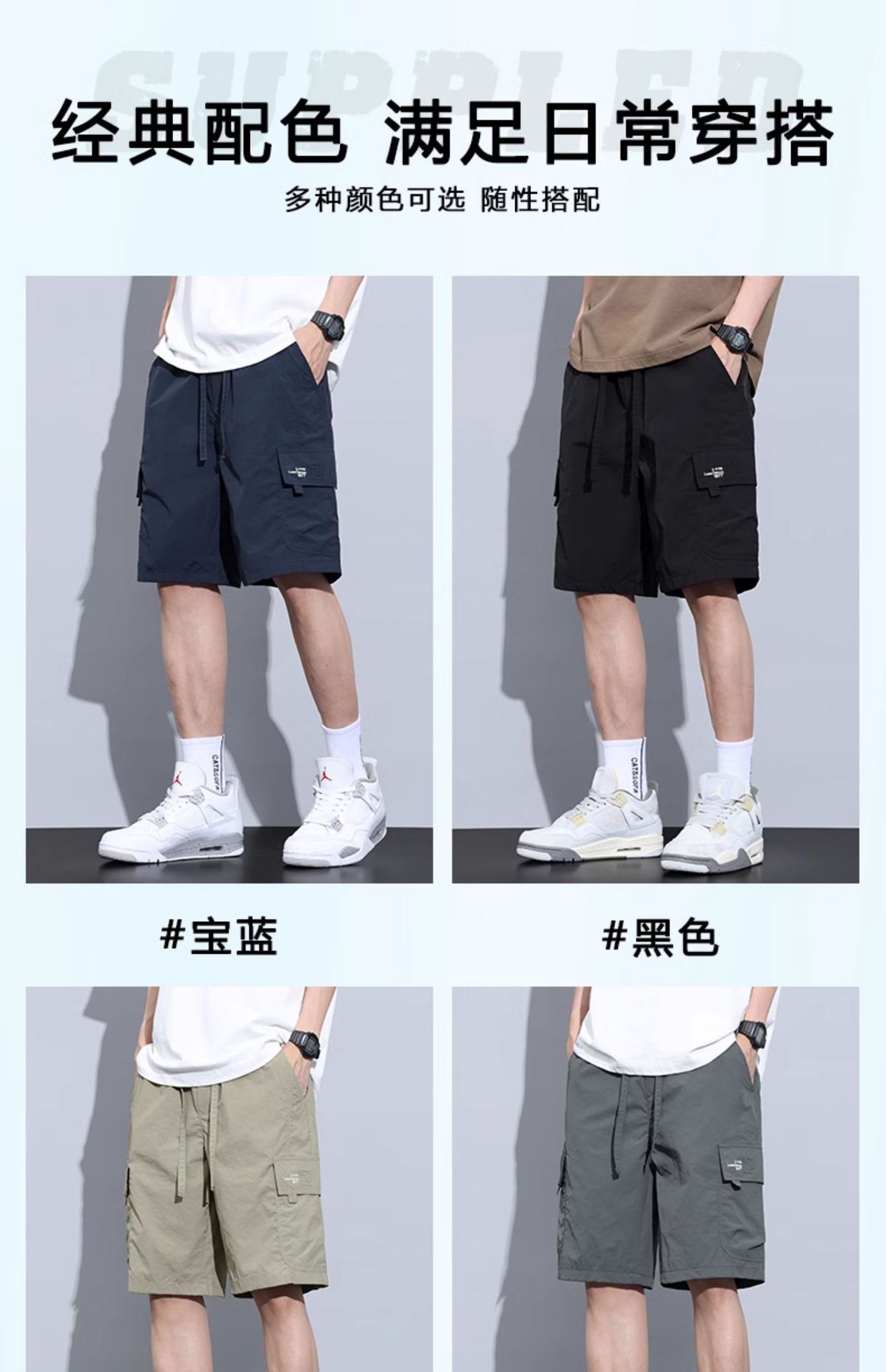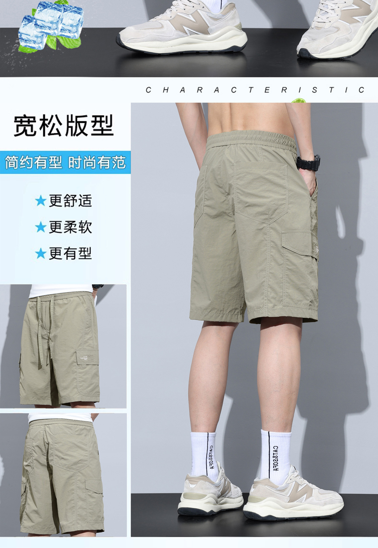 작업복 반바지 남성 여름 얼음 실크 얇은 반바지 속건성 5부 캐주얼 바지 소년 겉옷 스포츠 바지스토어 가기