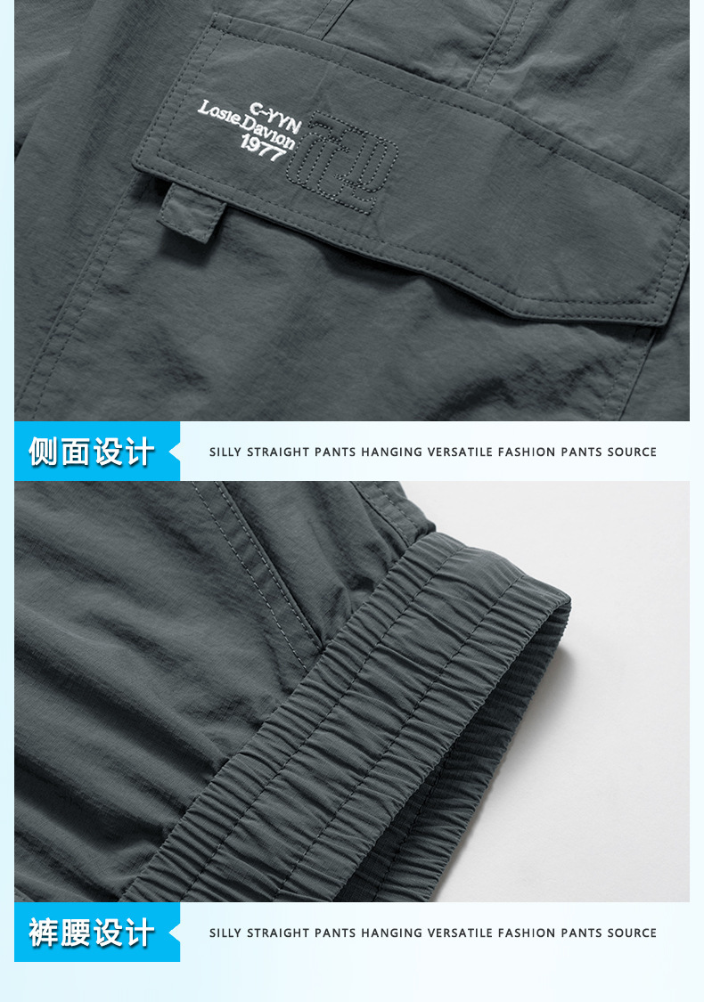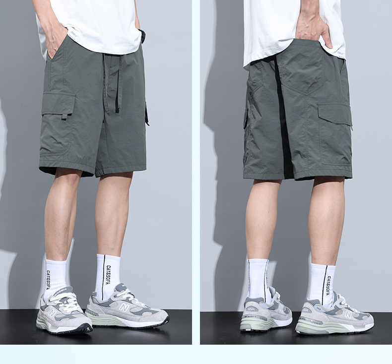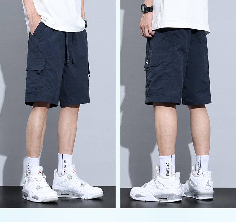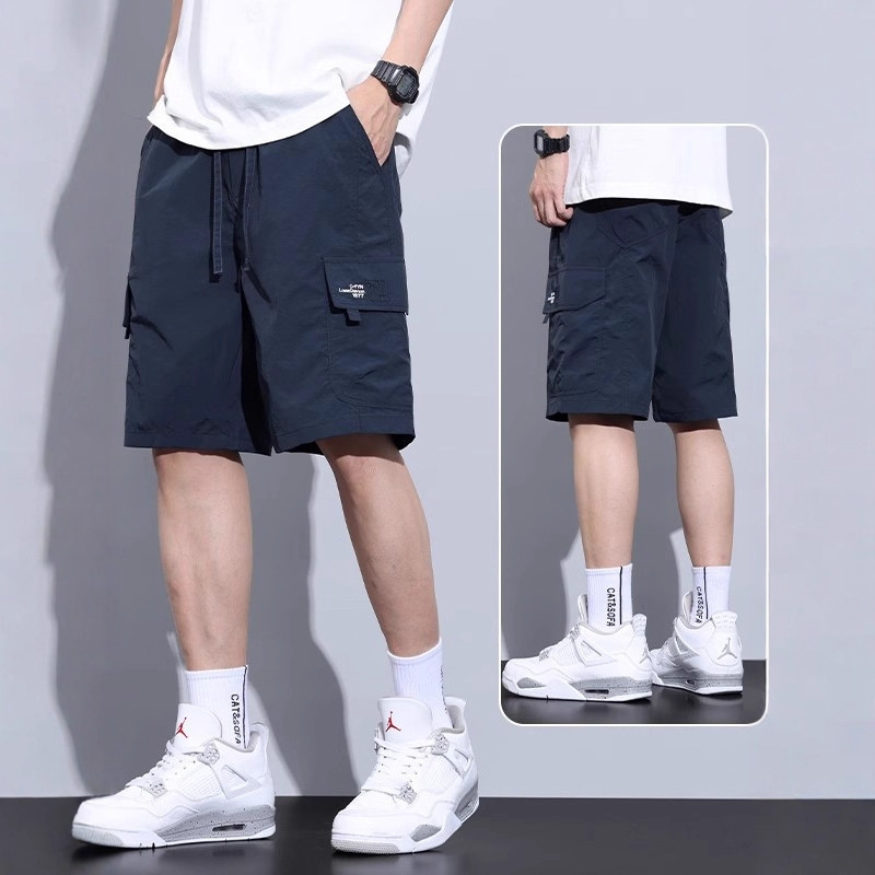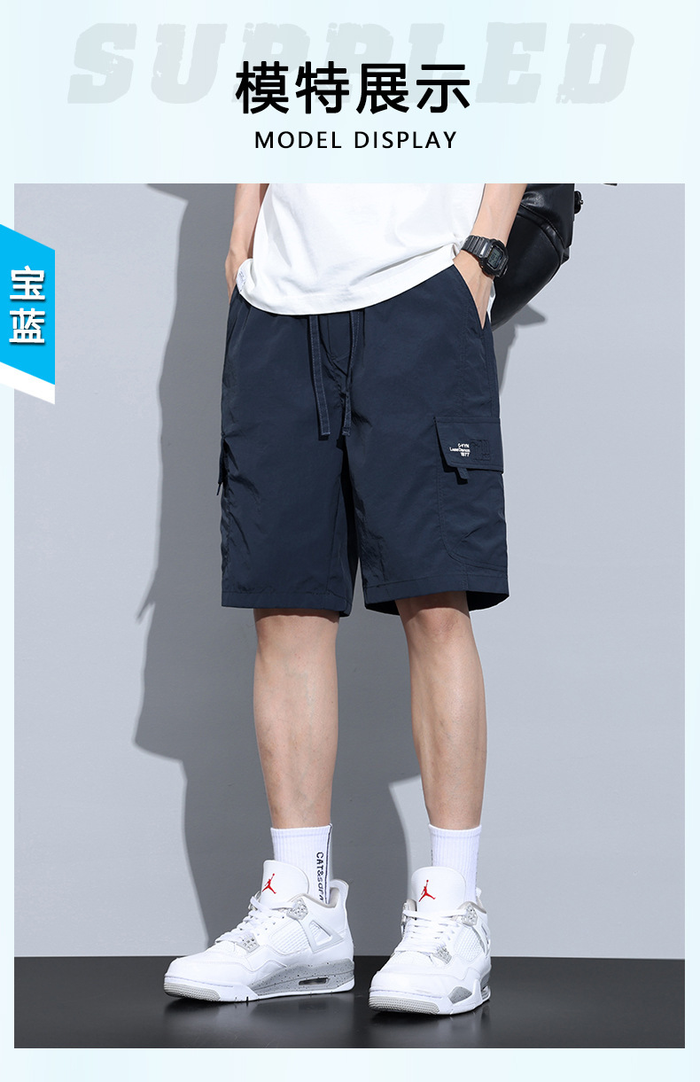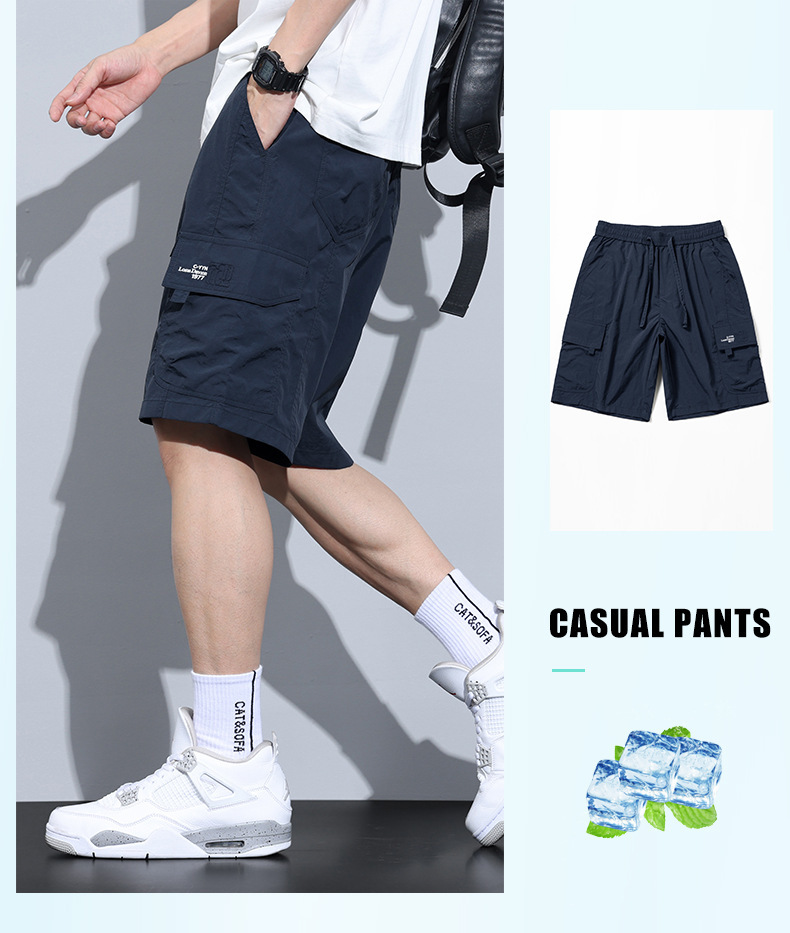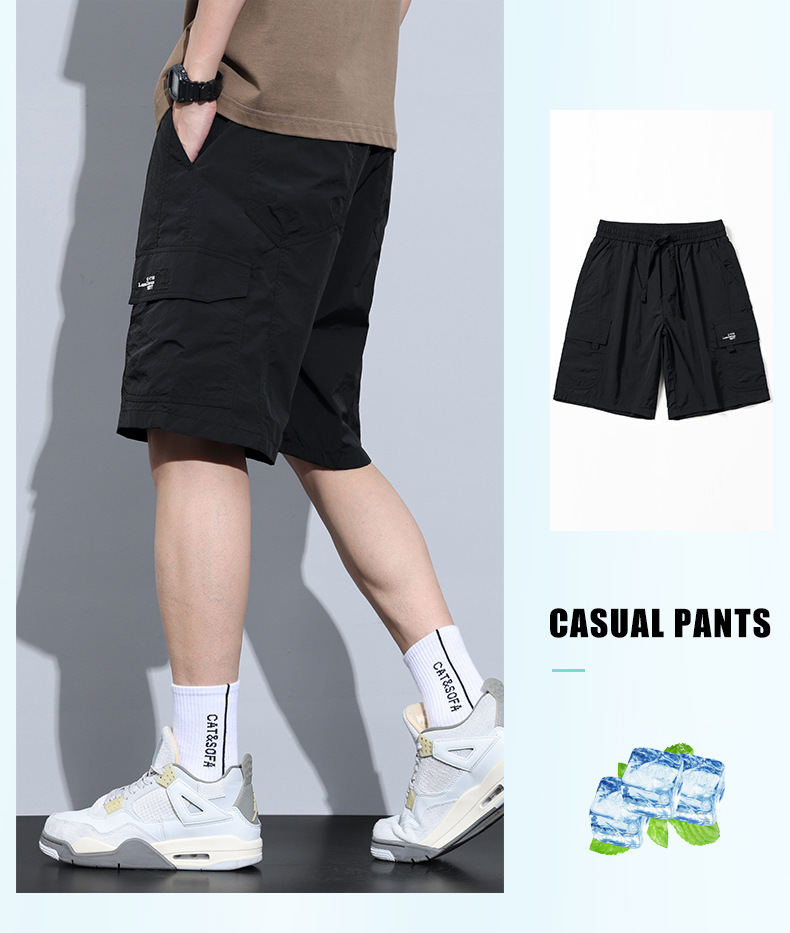 작업복 반바지 남성 여름 얼음 실크 얇은 반바지 속건성 5부 캐주얼 바지 소년 겉옷 스포츠 바지