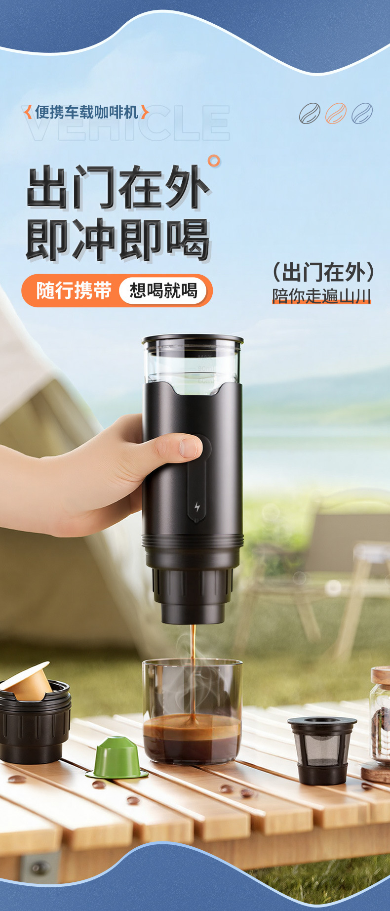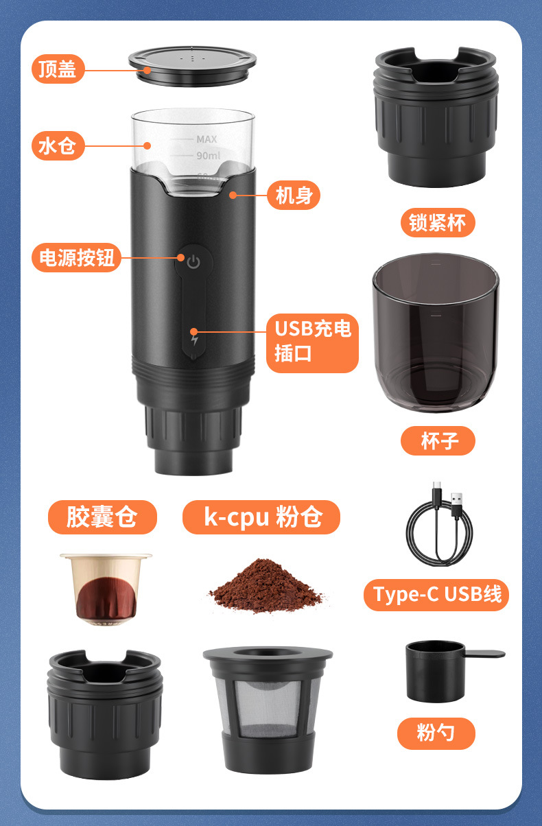 국경을 넘는 무선 전기식 미국식 KCUP 캡슐 커피 머신 차량용 가정용 휴대용 캠핑 커피 머신 야외용 커피 머신스토어 가기