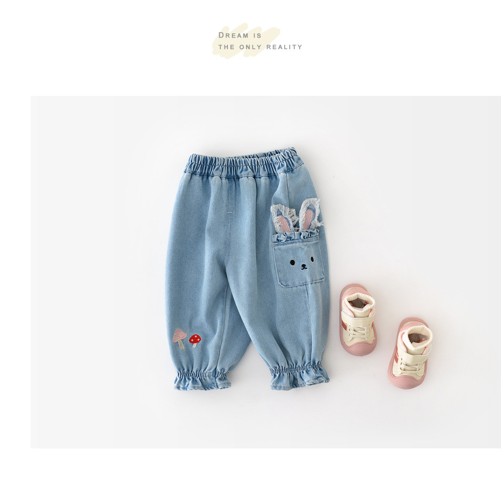 Abao Nannan 소녀 가을 만화 토끼 데님 바지 아기 한국 스타일 레깅스 바지 53526