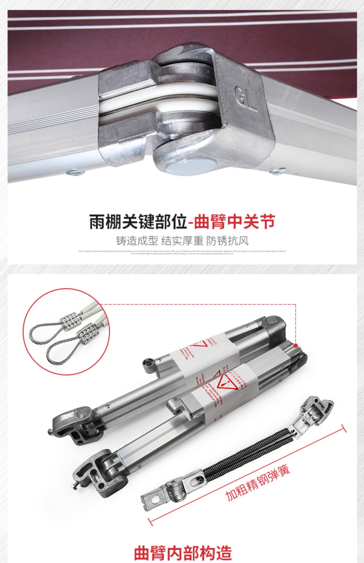 • 두꺼워짐 5m 스트레칭 1.5m (장착 플레이트 추가) 두꺼워진 곡선 암 + 방수성이 높은 원단
