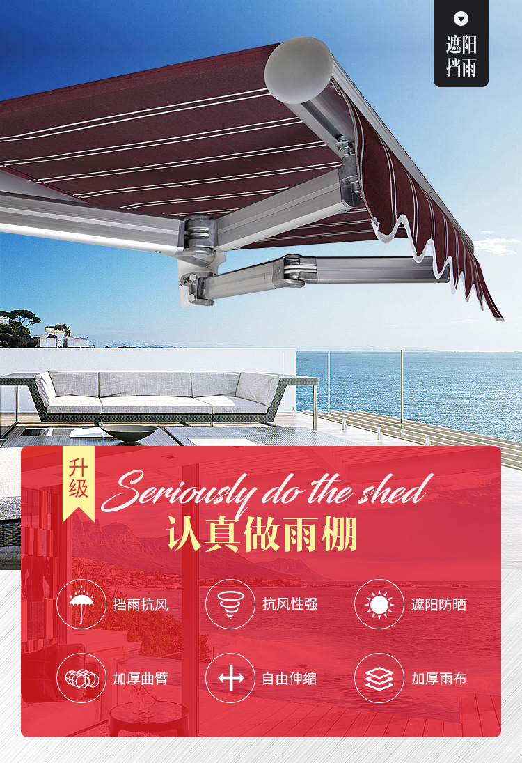 • 두꺼워짐 2m 스트레칭 1.5m (장착 플레이트 추가) 두꺼워진 곡선 암 + 방수성이 높은 원단