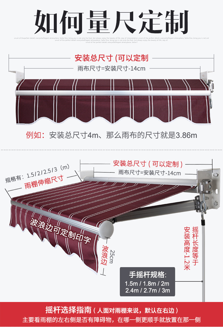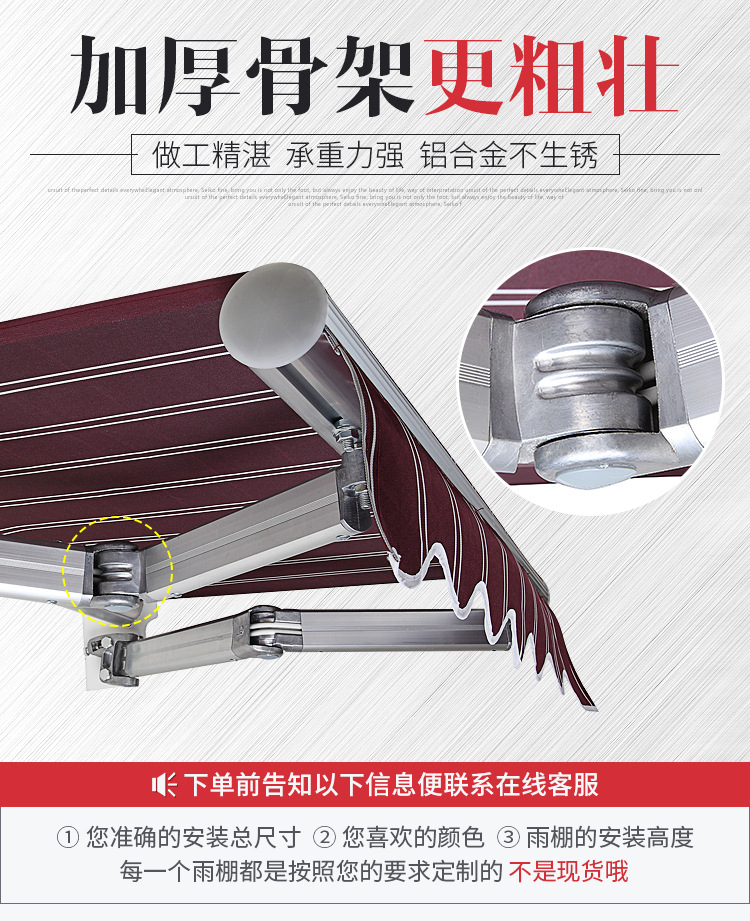 • 두꺼워짐 3m 스트레칭 1.5m (장착 플레이트 추가) 두꺼워진 곡선 암 + 방수성이 높은 원단