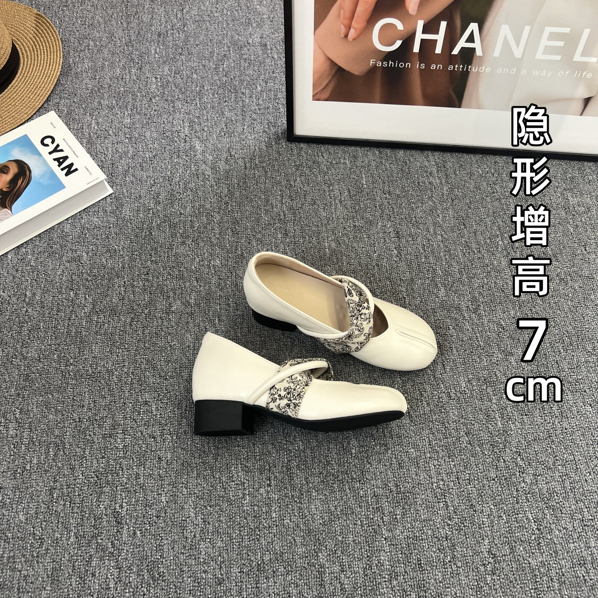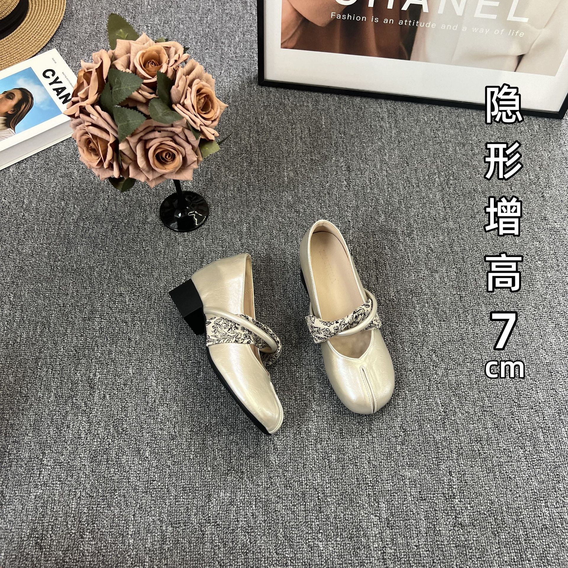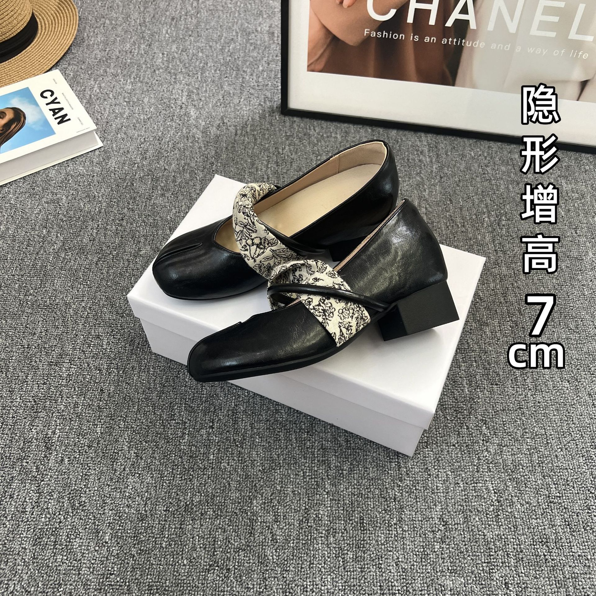 샤넬 스타일 프렌치 스타일 얕은굽 7cm 키높이 통굽 힐 슈즈, 레트로하고 다재다능한 이브닝룩, 스커트와 잘 어울리는 메리제인 슈즈스토어 가기