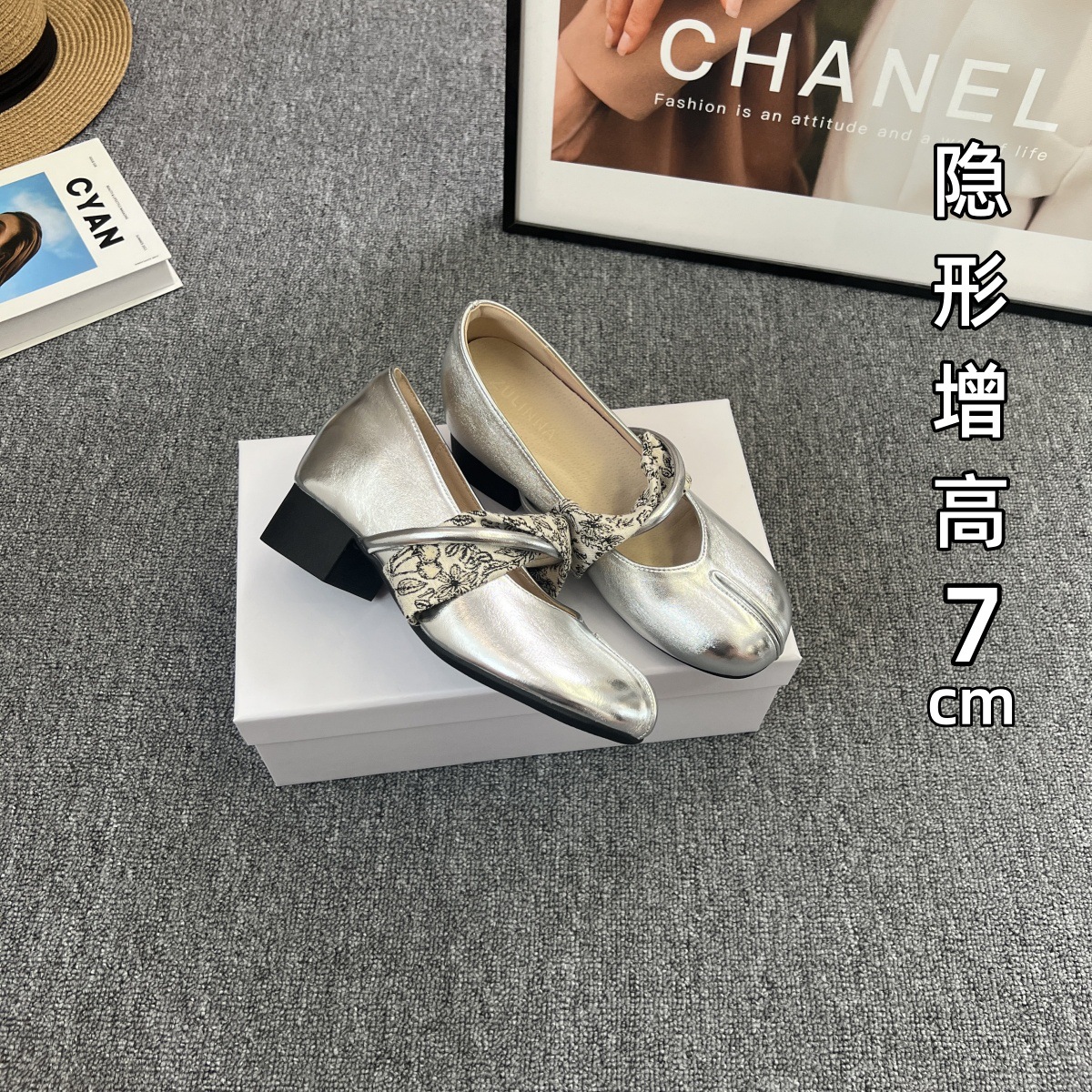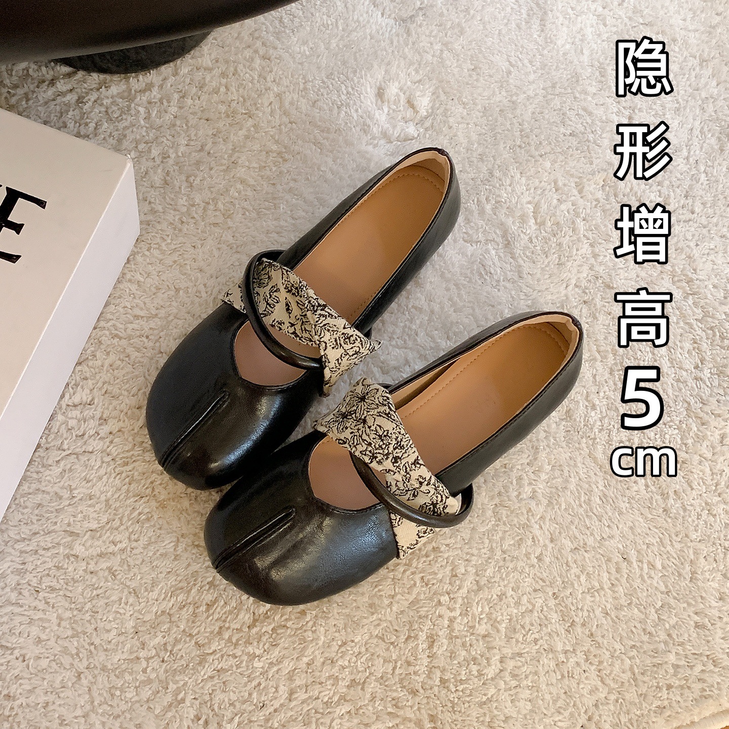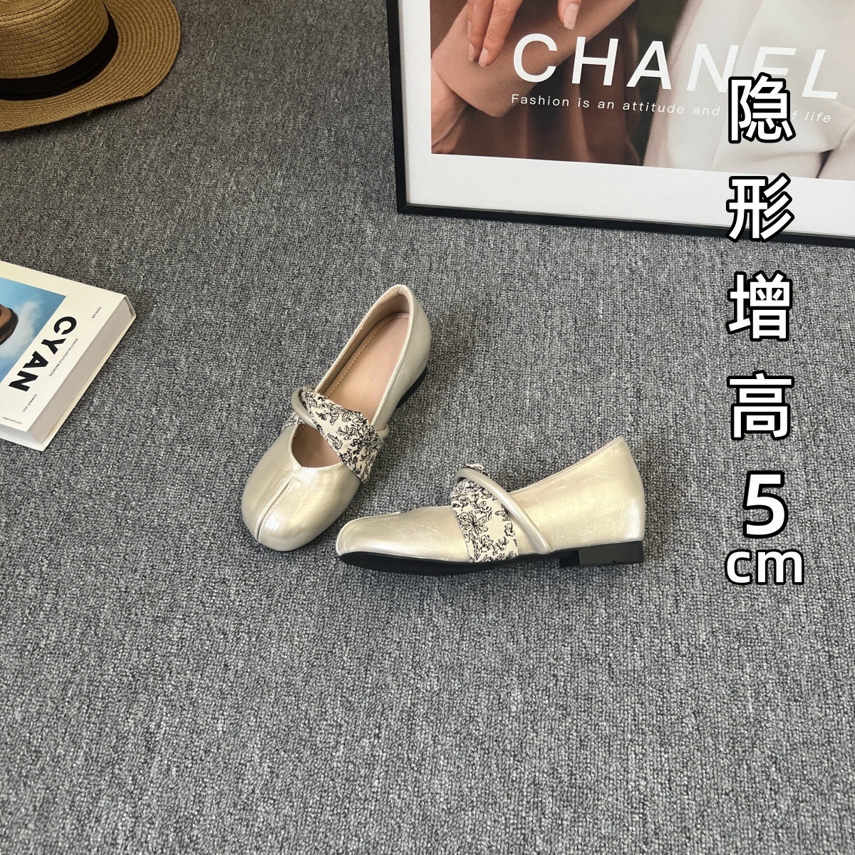 샤넬 스타일 프렌치 스타일 얕은굽 7cm 키높이 통굽 힐 슈즈, 레트로하고 다재다능한 이브닝룩, 스커트와 잘 어울리는 메리제인 슈즈스토어 가기