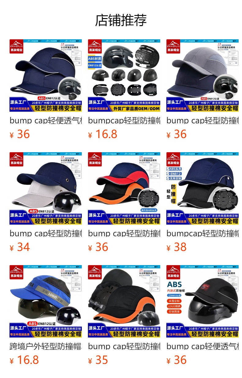 bump cap轻型防撞帽ABS内胆头壳户外头部防摔鸭舌帽透气棉安全帽