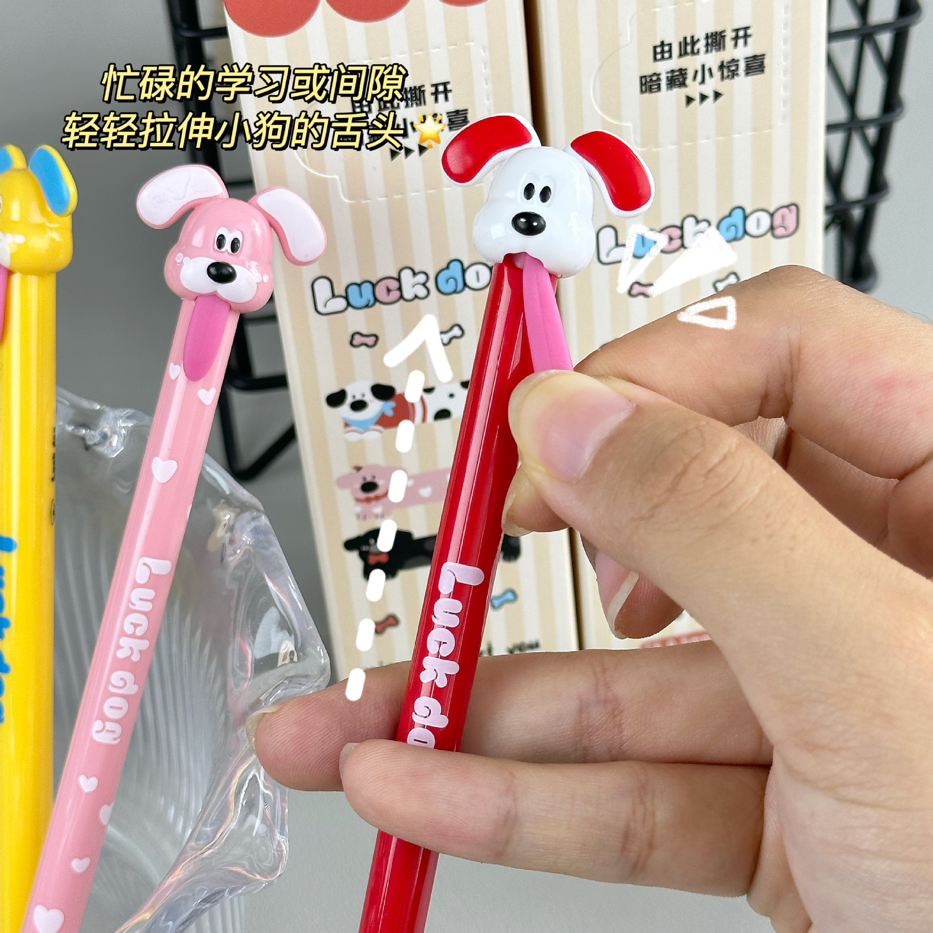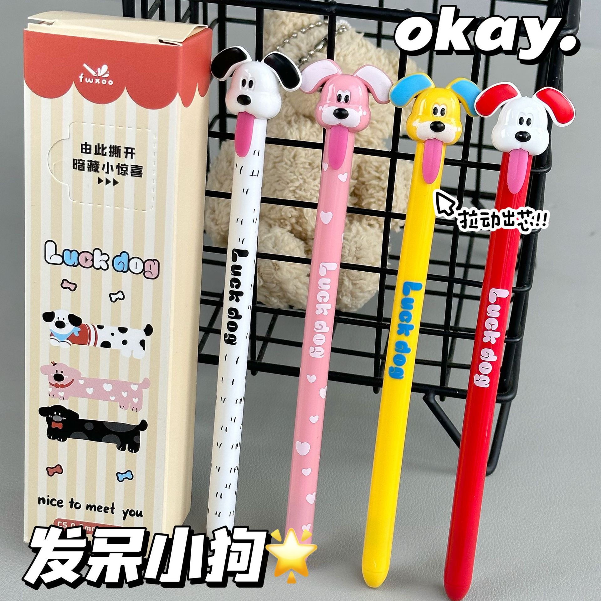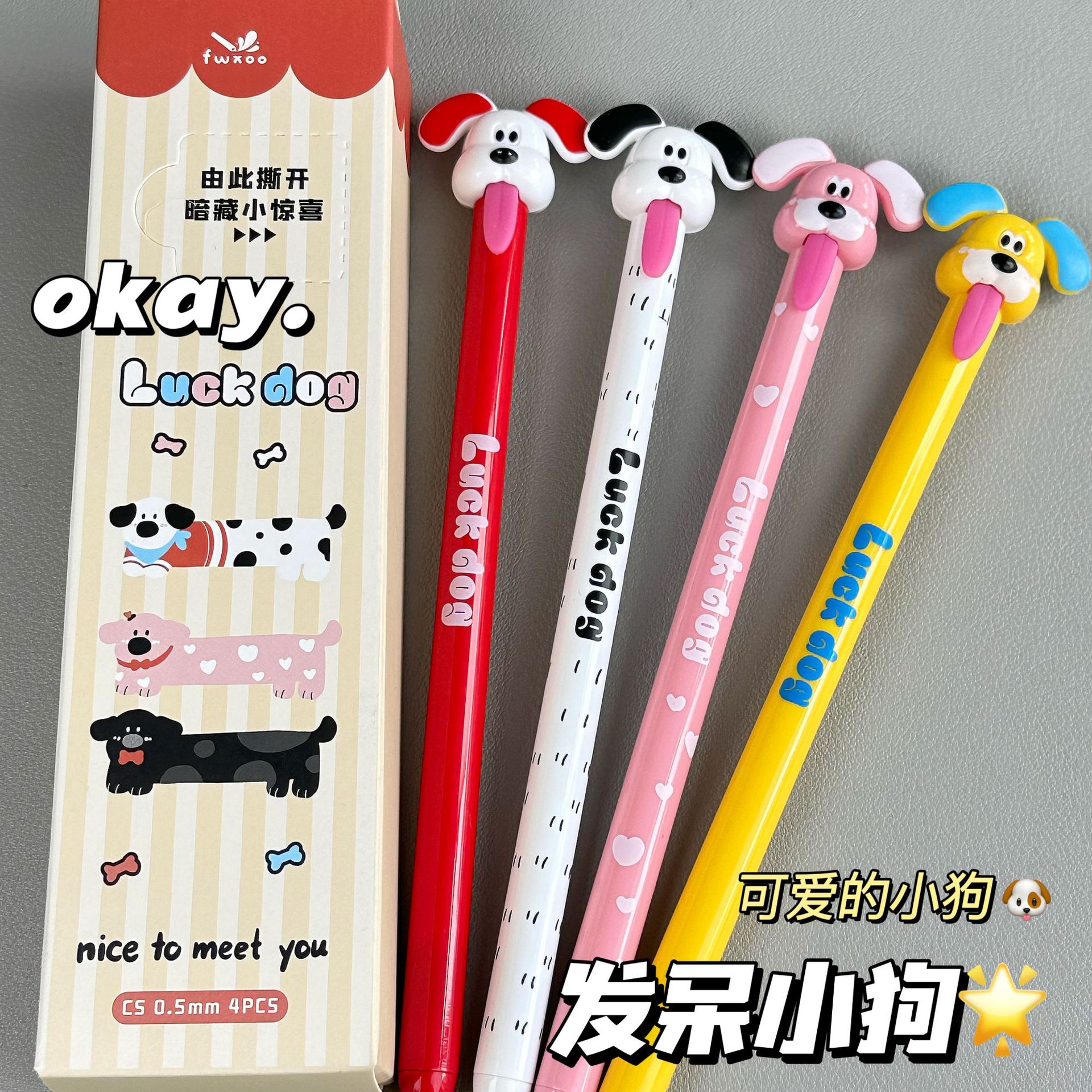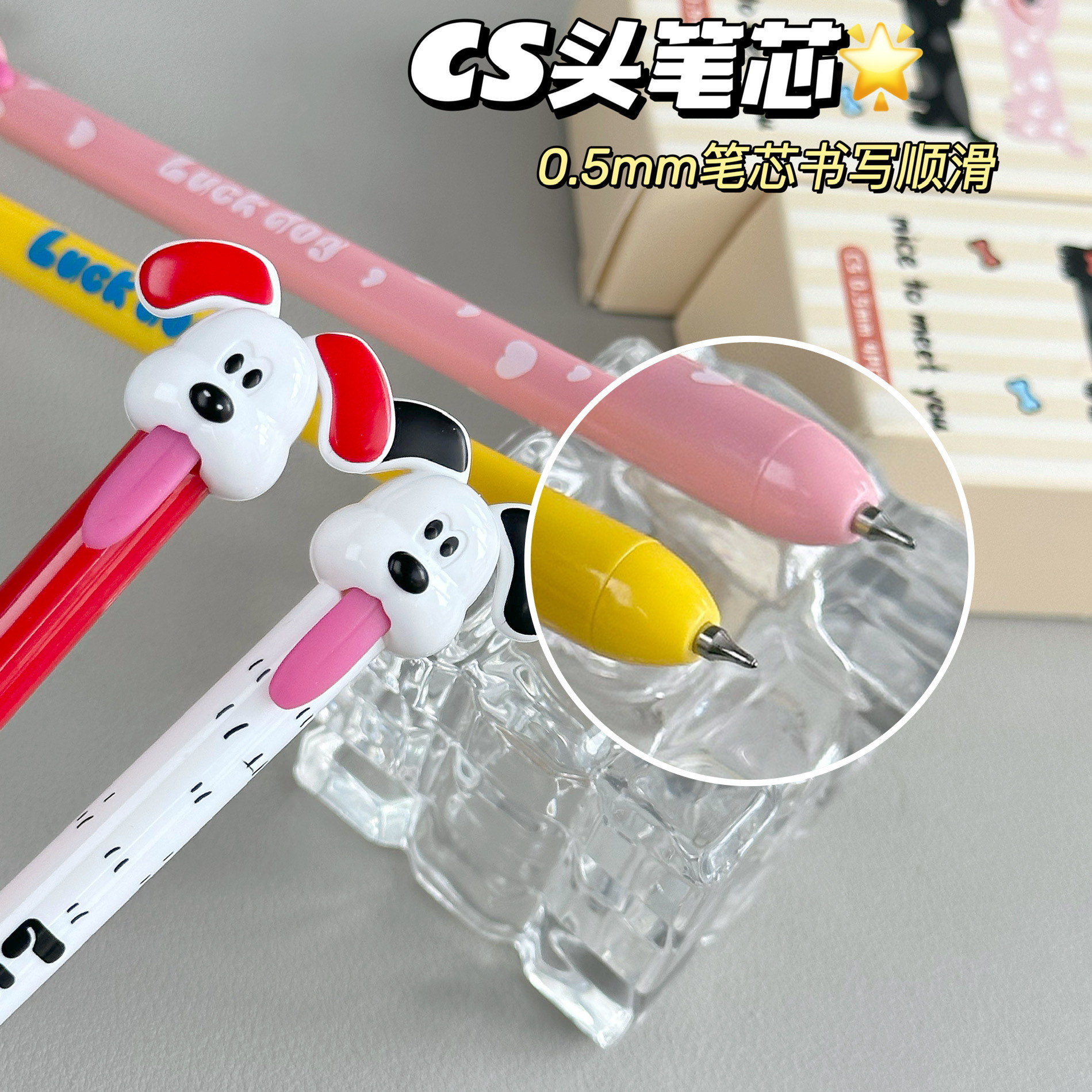 어떤 물건이든 귀여운 강아지가 귀여운 중성펜을 당겨서 학생들이 보기에도 멋진 펜으로 풀어주는 검정펜