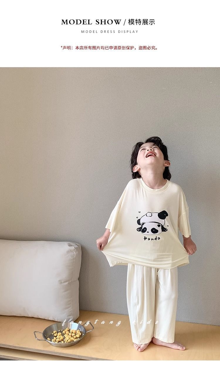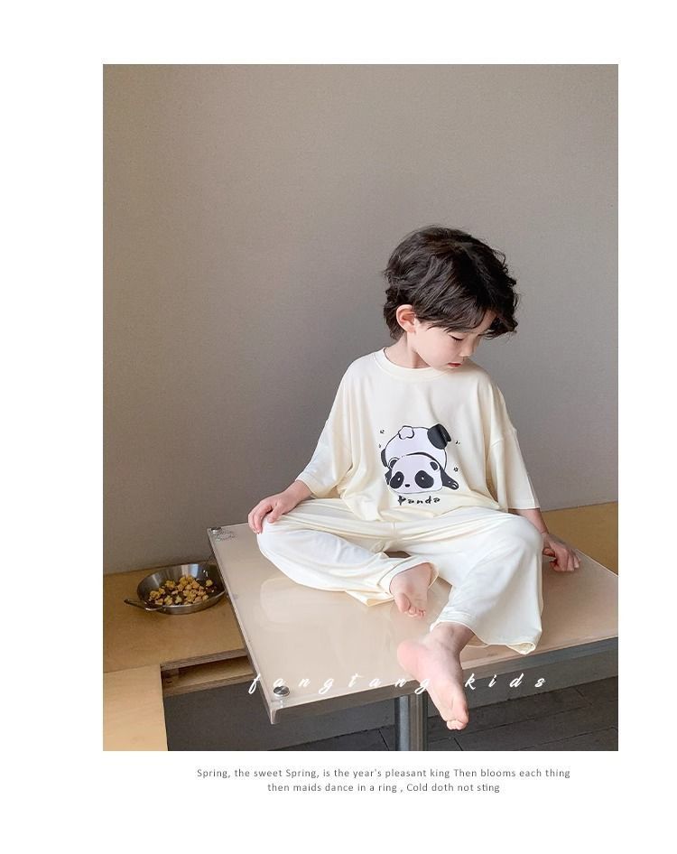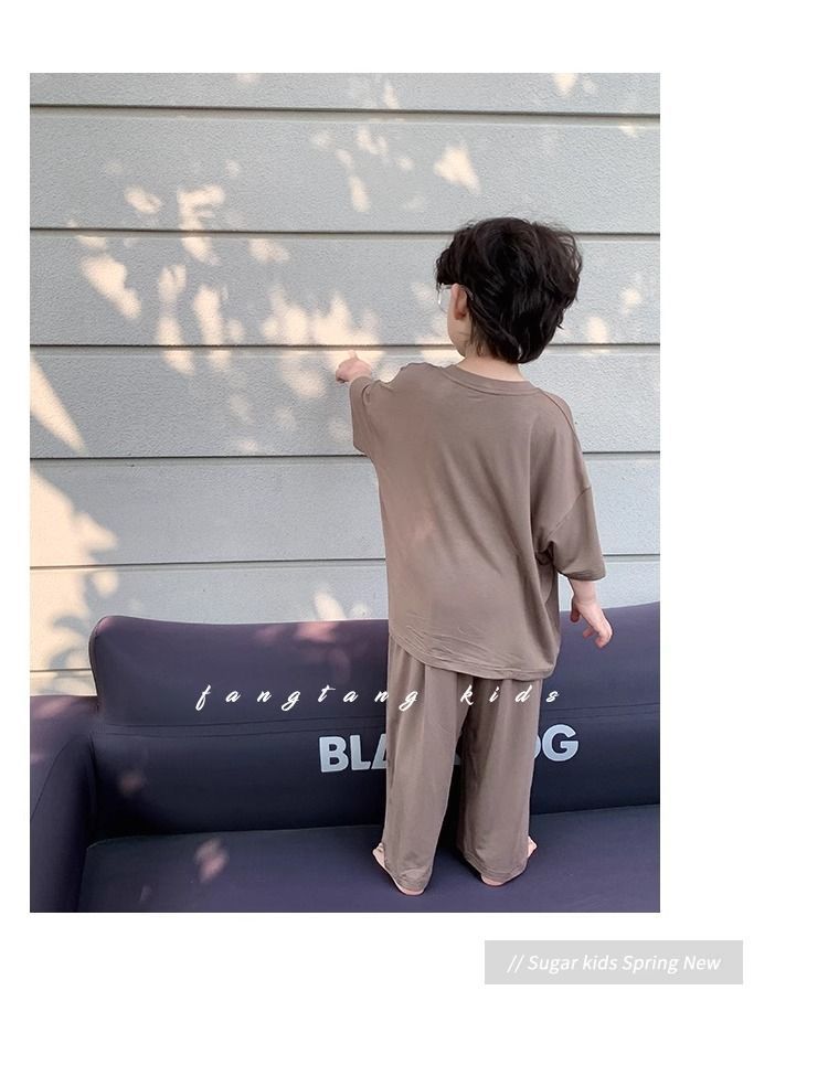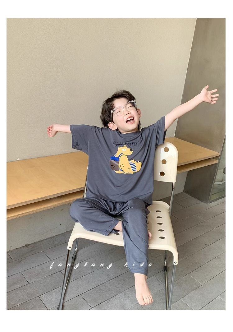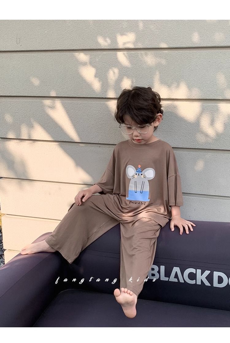 Shuwu 동화 새로운 한국 스타일 아동 의류 아동 여름 의류 홈웨어 잠옷 아기 반팔 양복 어린 소년 여름스토어 가기