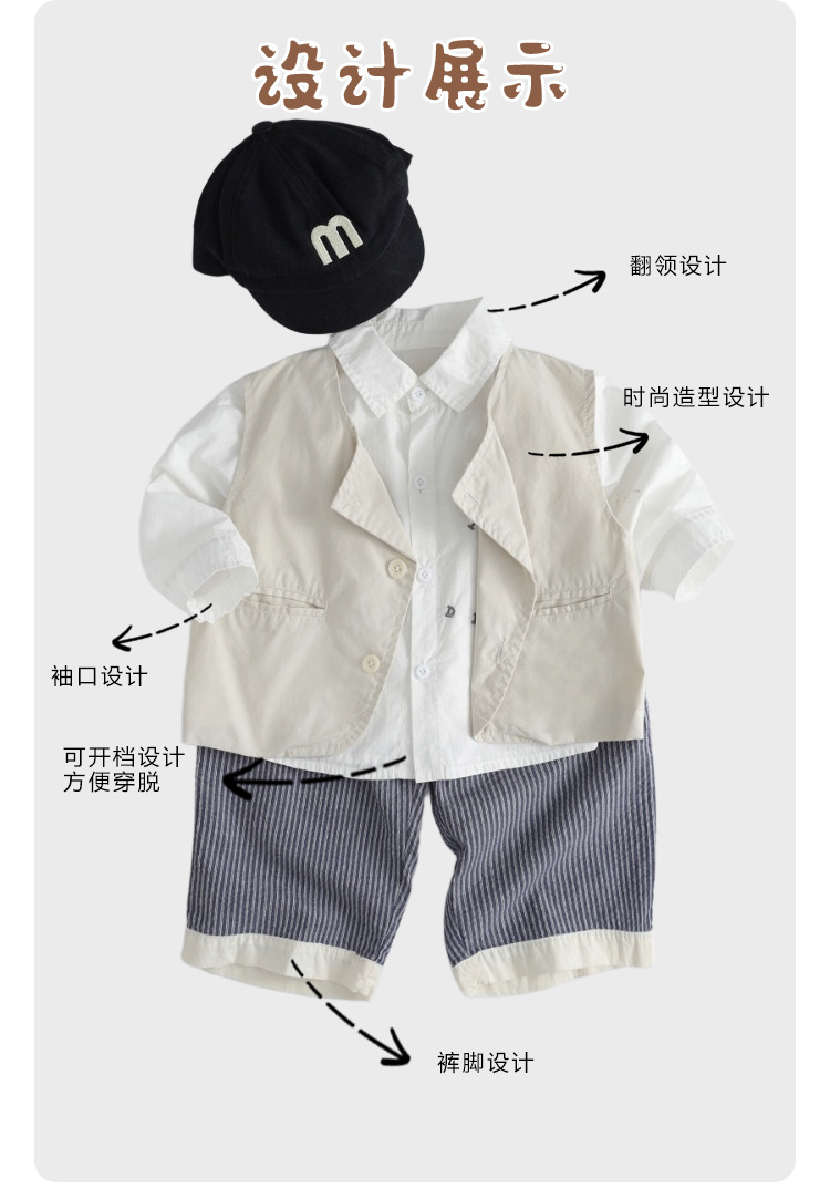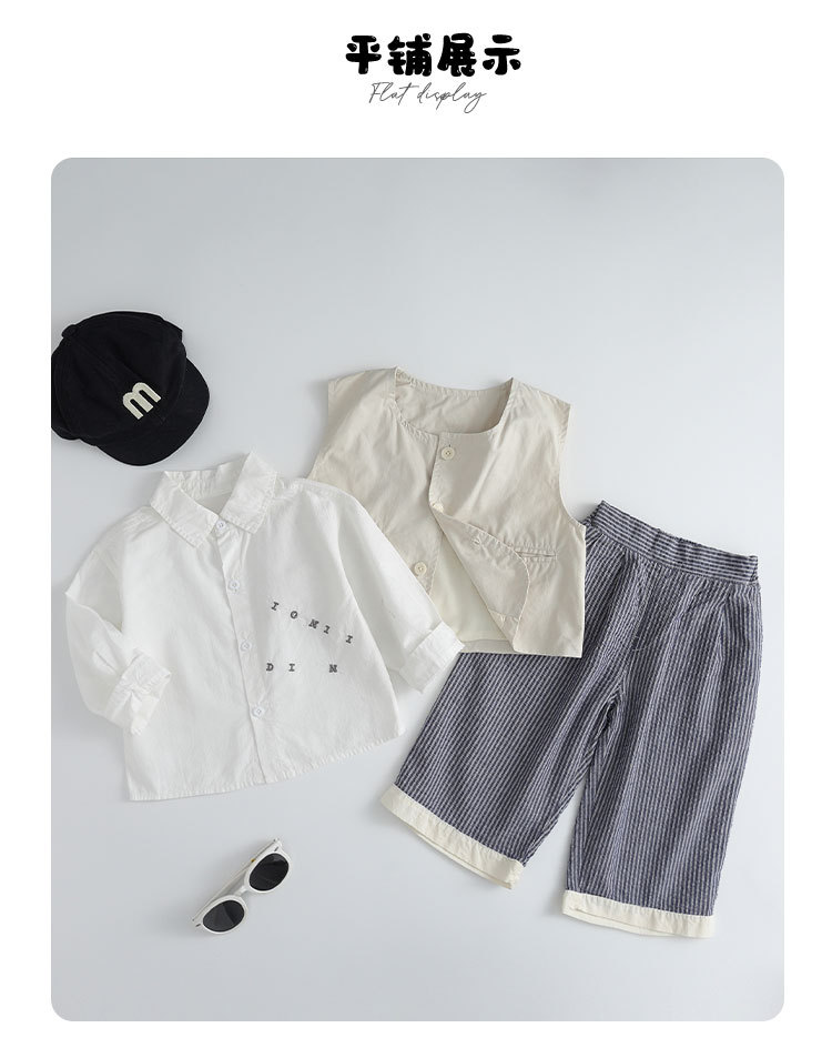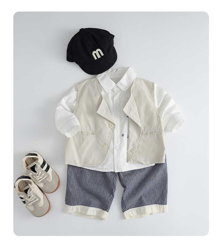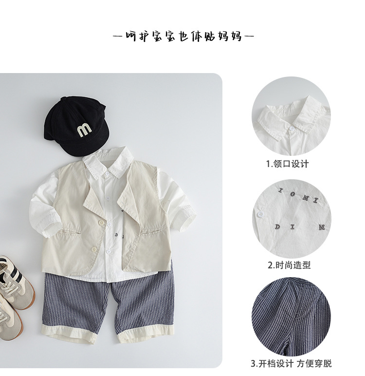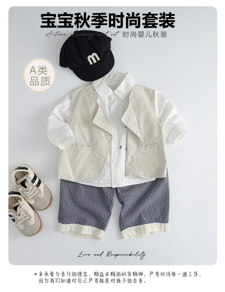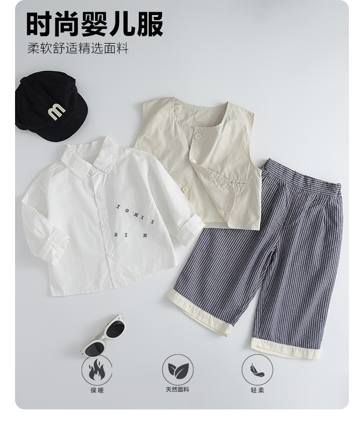 소년 정장 봄, 가을 2025 새로운 스타일 아기 소년 유행 조끼 셔츠 바지 드레스 3 피스 세트