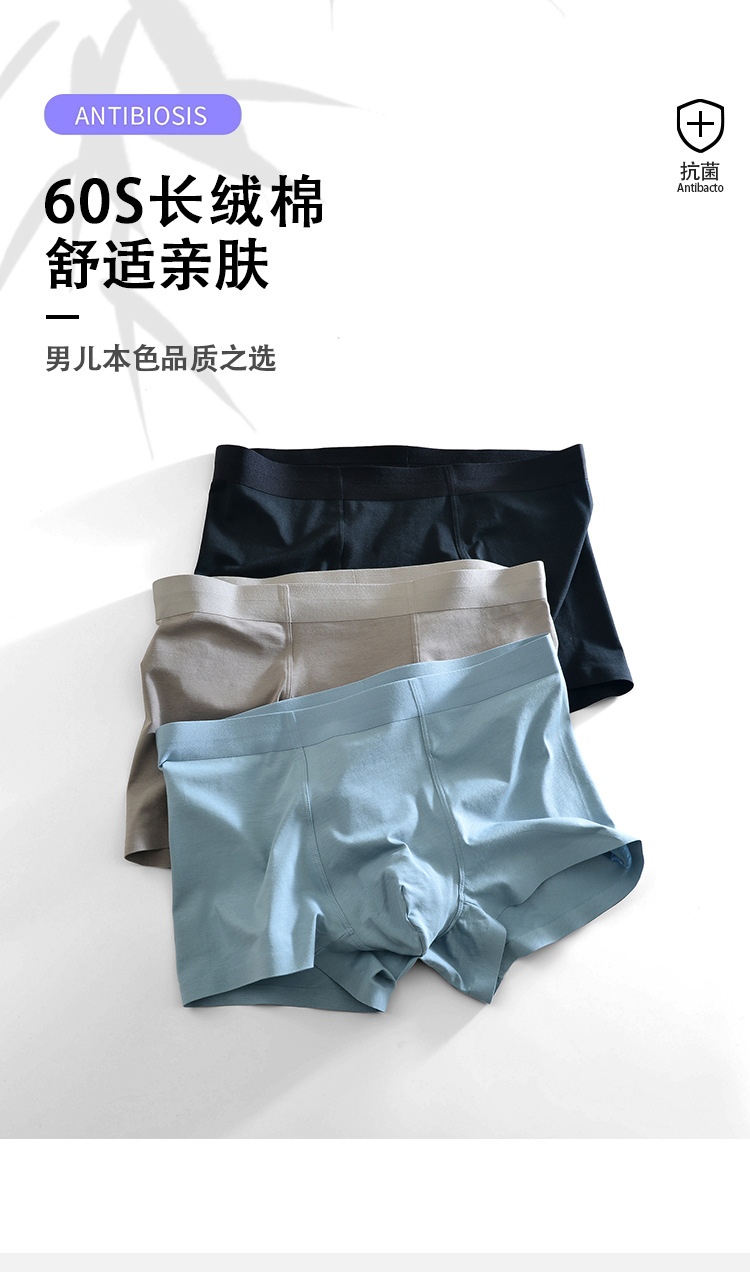 60 카운트 빗질 긴 스테이플 면 남성 속옷, 매끄럽고 편안하며 통기성이 뛰어난 여름 항균 소년 복서 반바지 도매 신규