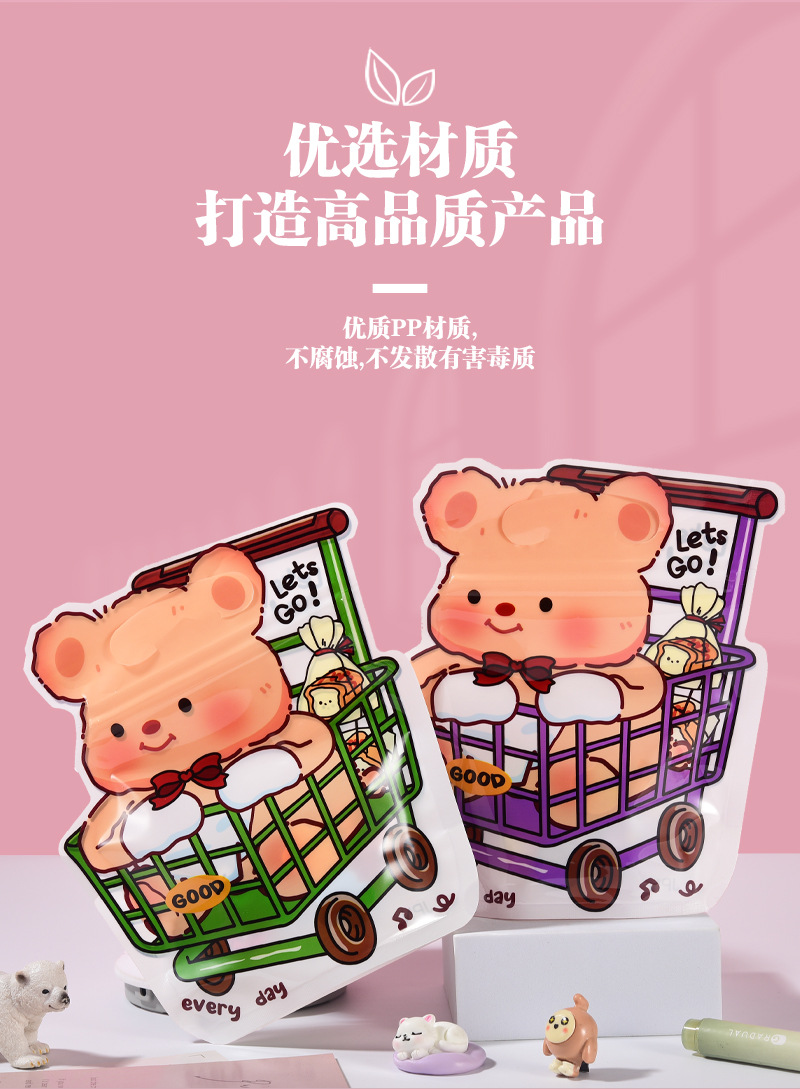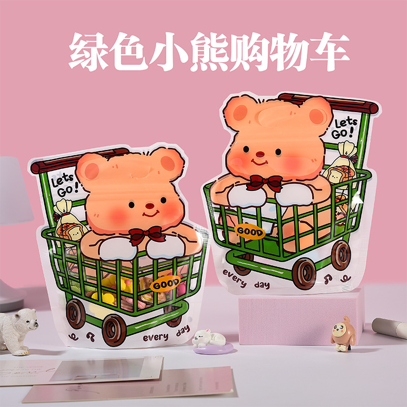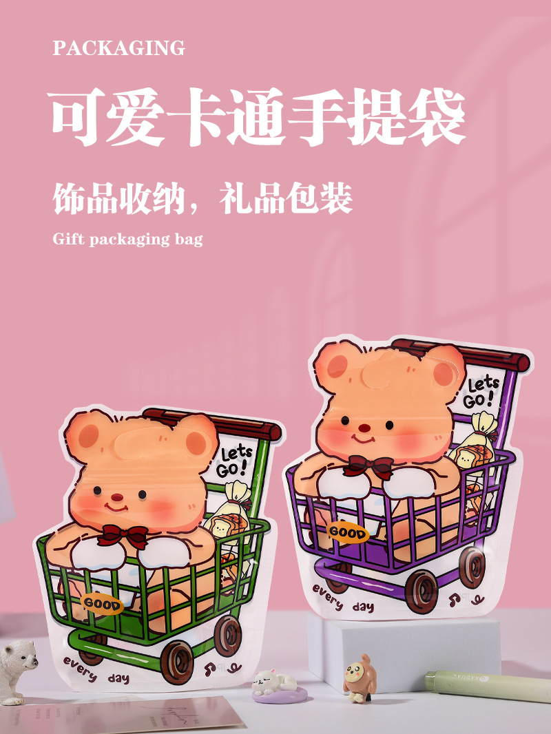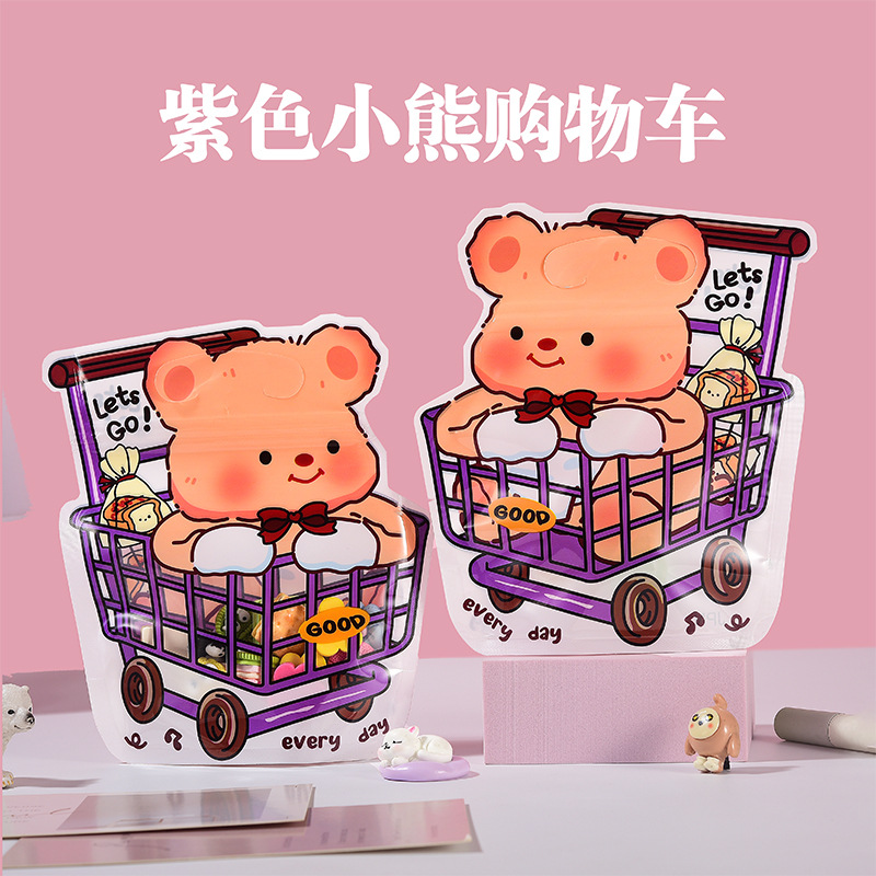 귀여운 만화 곰 모양의 플라스틱 핸드백 장난감 스낵 자체 밀봉 포장 가방 머리핀 작은 보석 선물 가방스토어 가기