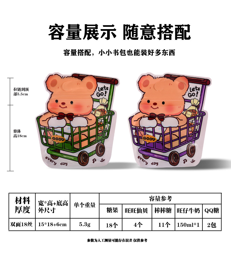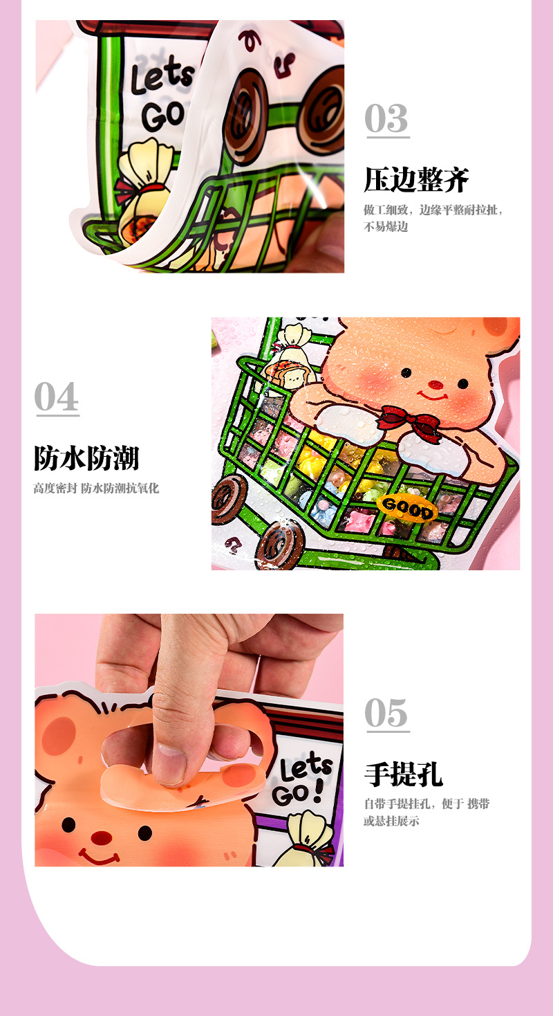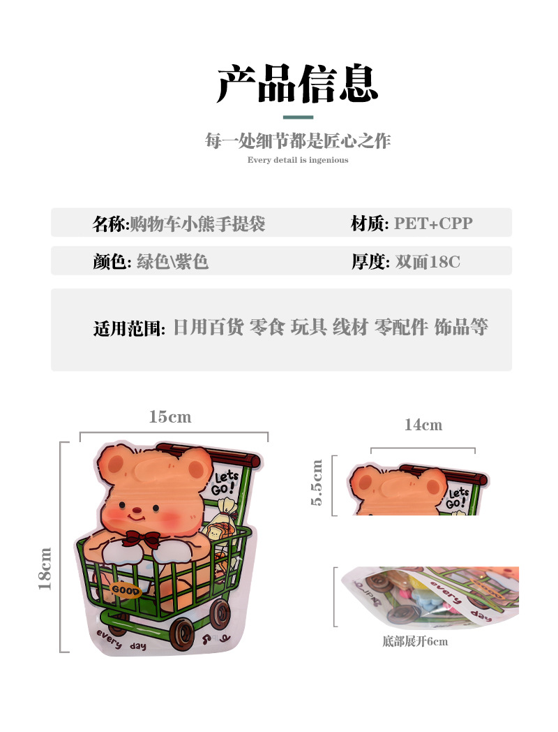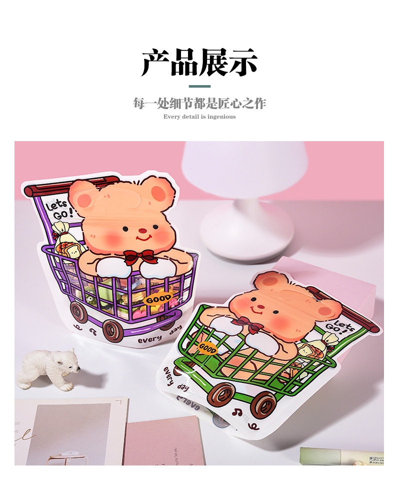 귀여운 만화 곰 모양의 플라스틱 핸드백 장난감 스낵 자체 밀봉 포장 가방 머리핀 작은 보석 선물 가방스토어 가기