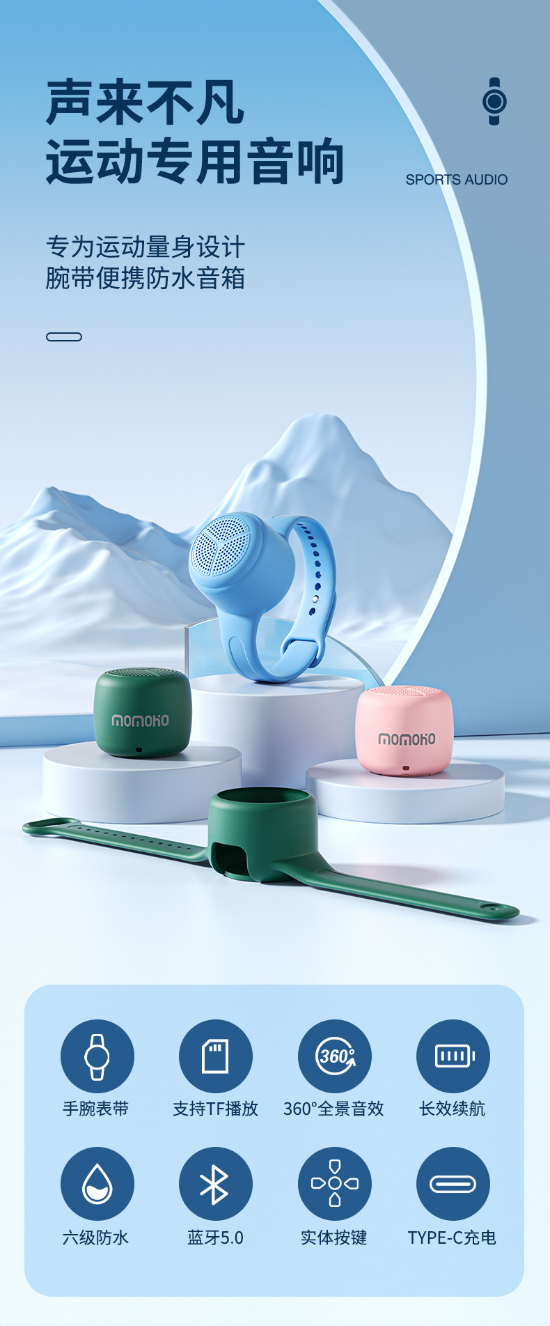 국경 간 맞춤형 시계 블루투스 스피커 야외 스포츠 피트니스 러닝 휴대용 손목 방수 미니 스피커