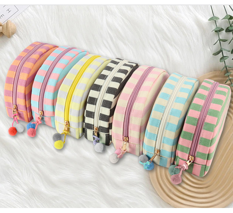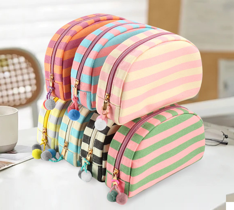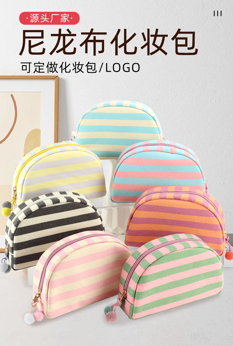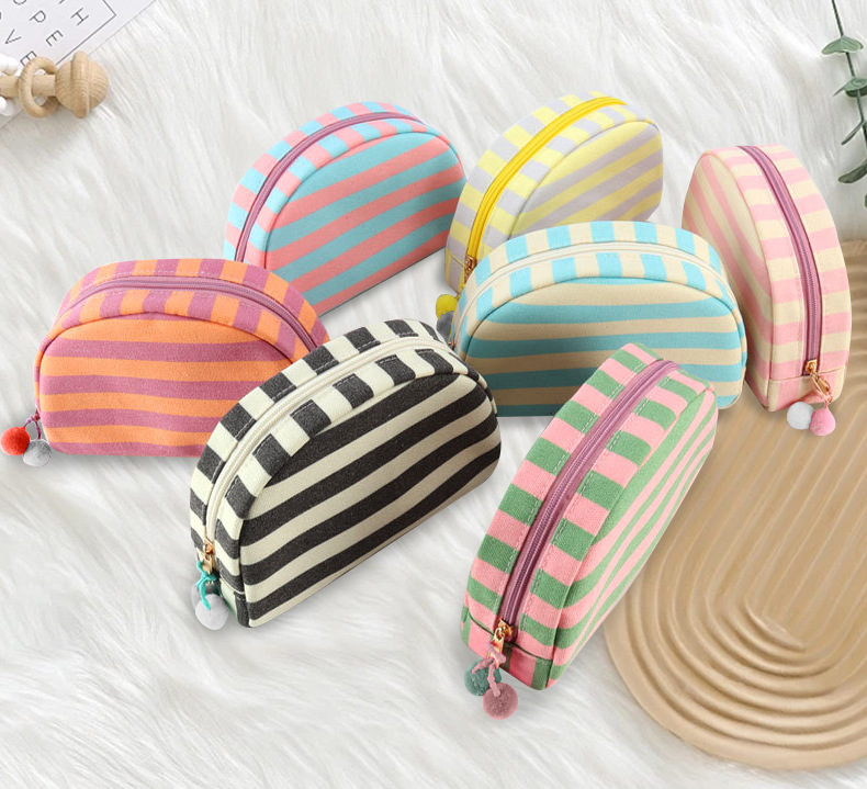 새로운 도파민 패션 쉘 화장품 가방 간단한 줄무늬 저장 가방 휴대용 여행 세면 용품 가방