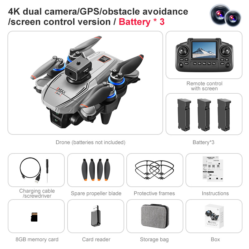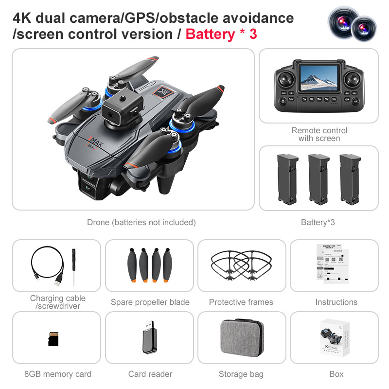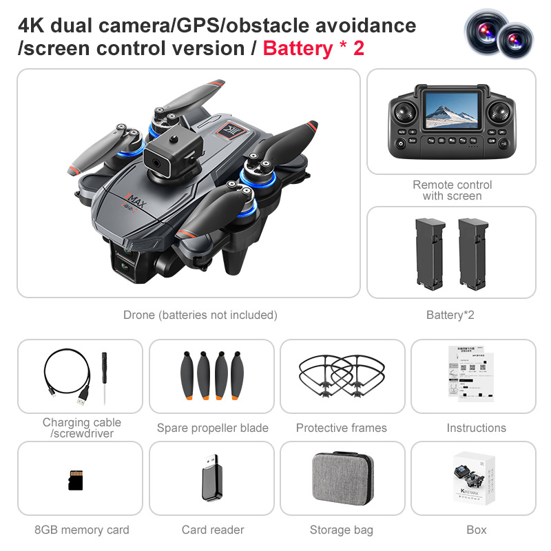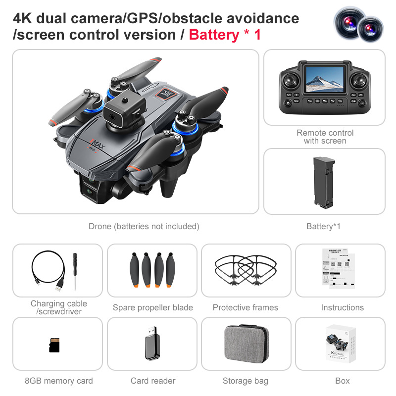 K812MAX 브러시리스 4축 항공기(스크린 제어 포함) HD 항공 사진 드론 GPS 반환 장애물 회피 항공 사진 기계