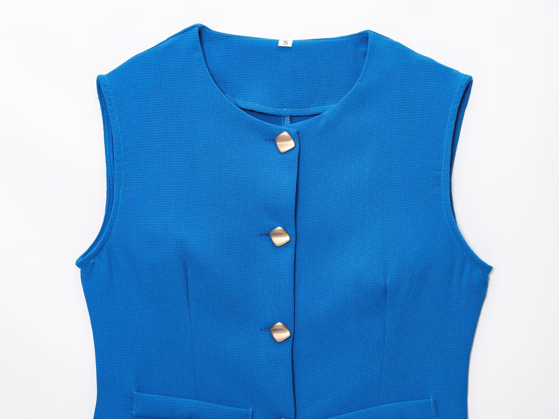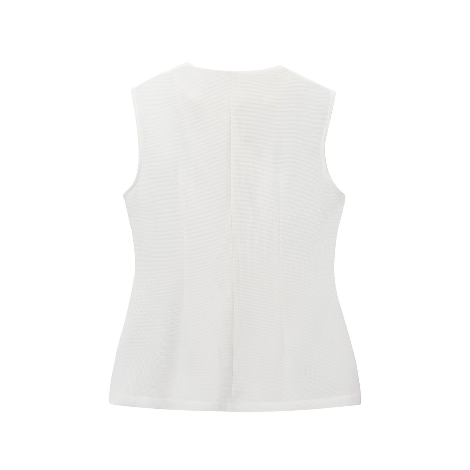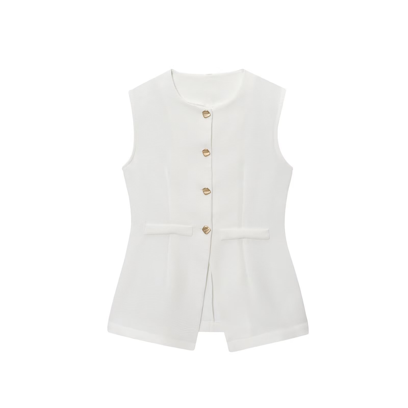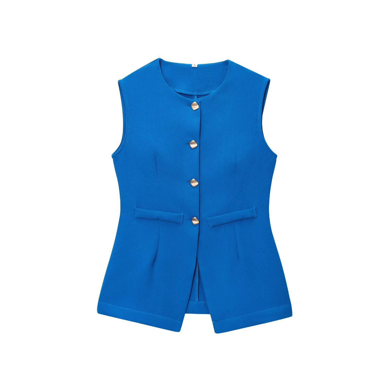 국경 간 여성 의류 2025 여름 새로운 유럽과 미국의 패션 라운드 넥 싱글 브레스트 조끼 조끼 코트 탑 여성