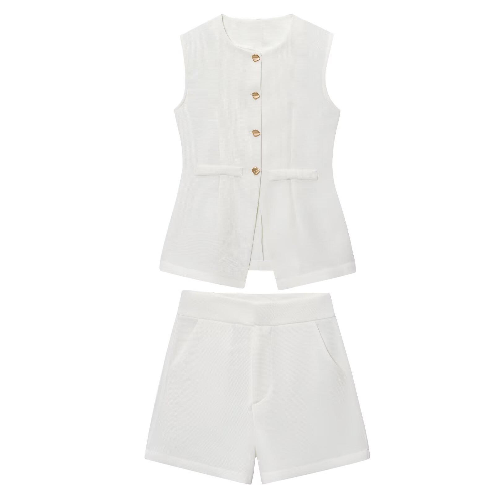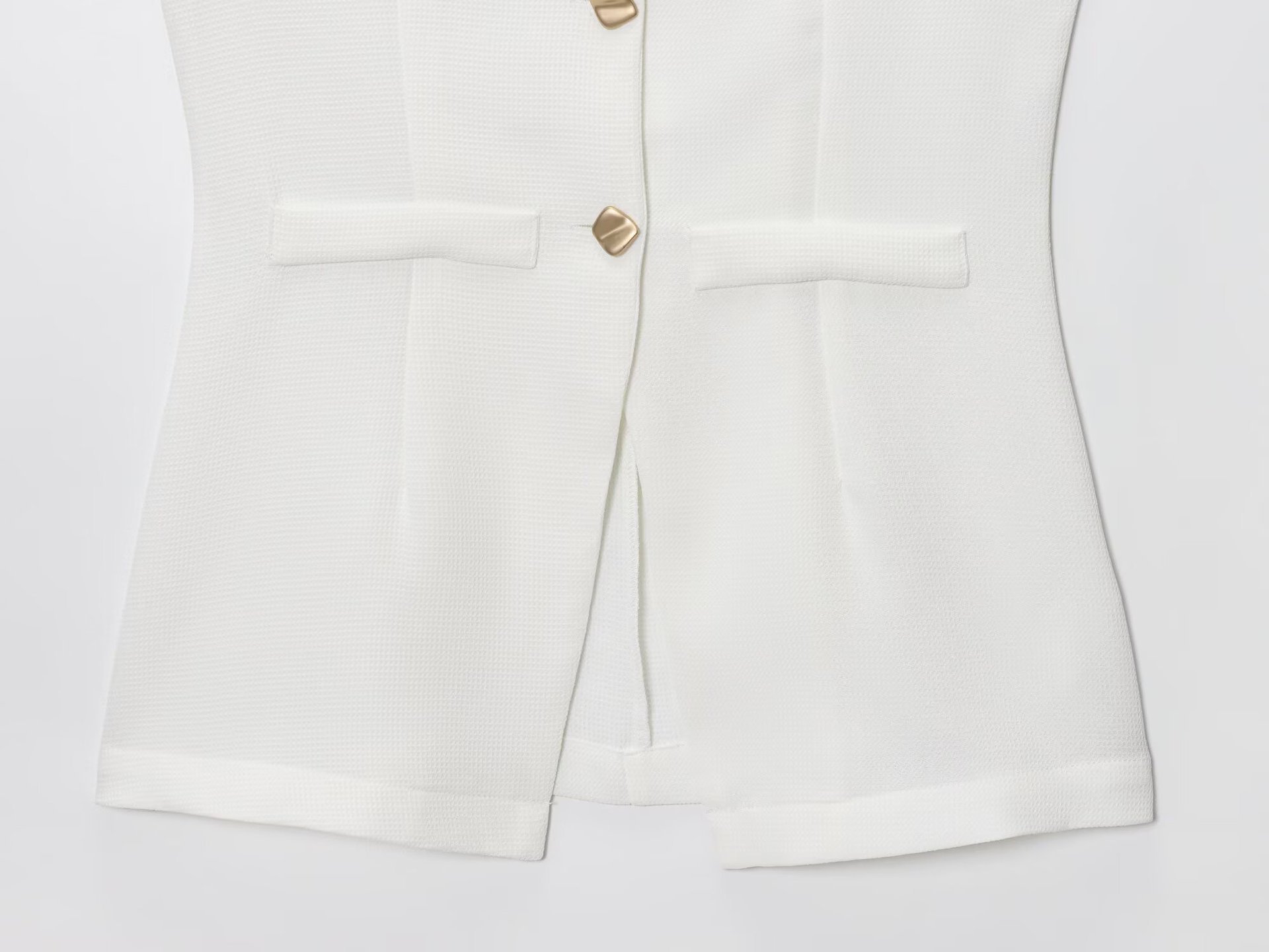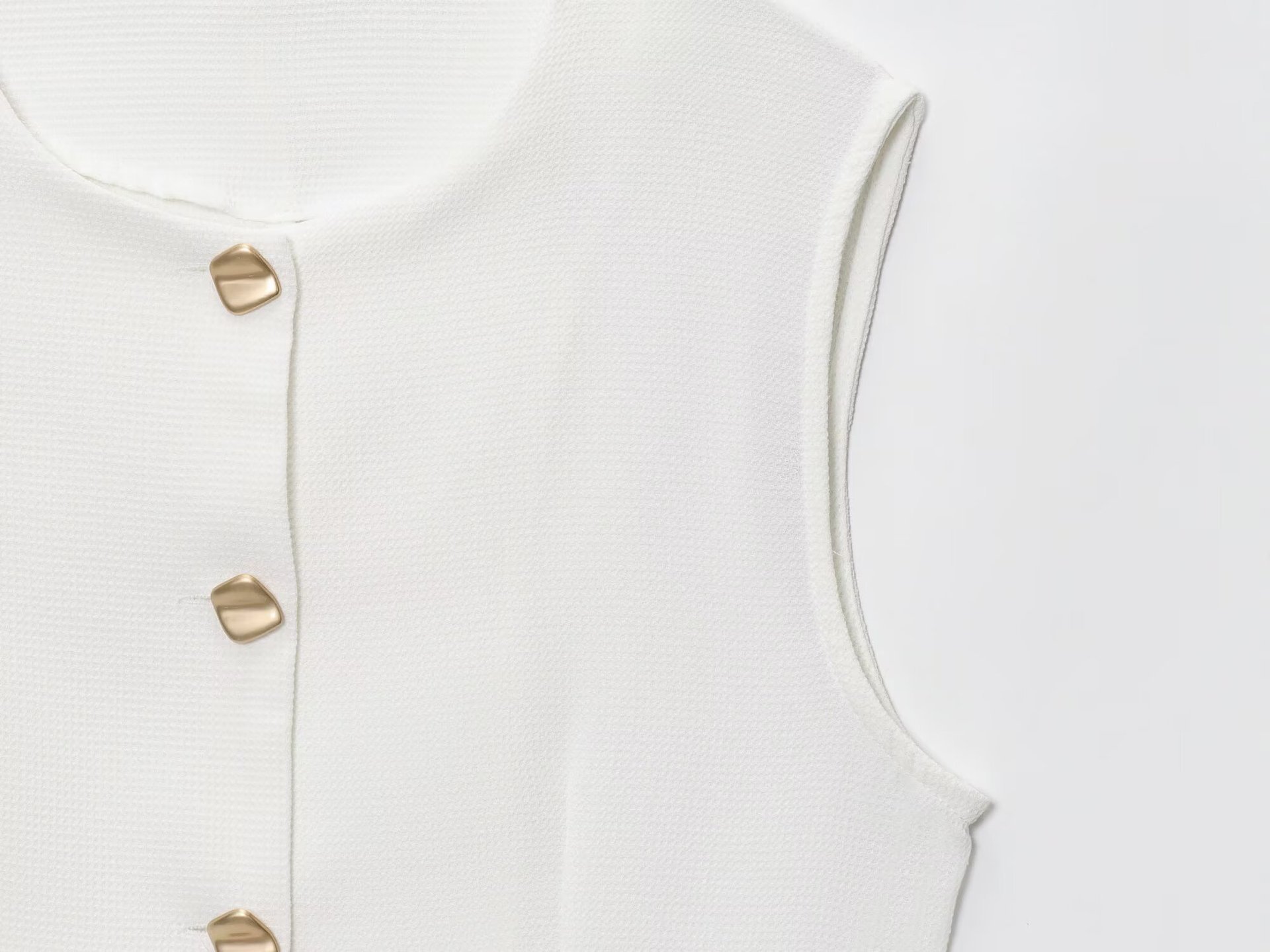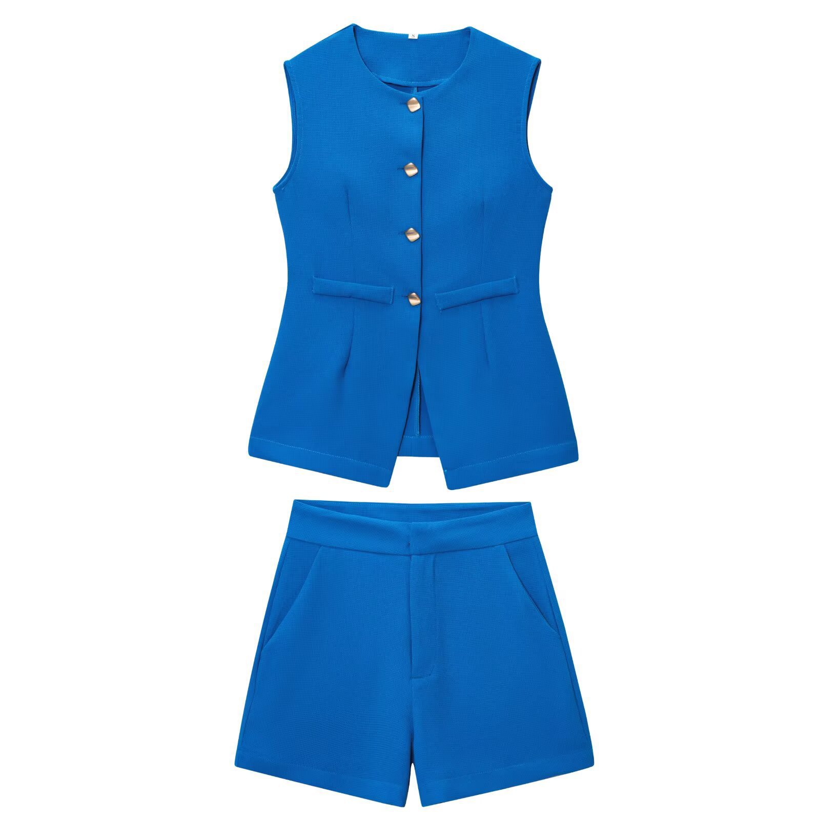 국경 간 여성 의류 2025 여름 새로운 유럽과 미국의 패션 라운드 넥 싱글 브레스트 조끼 조끼 코트 탑 여성