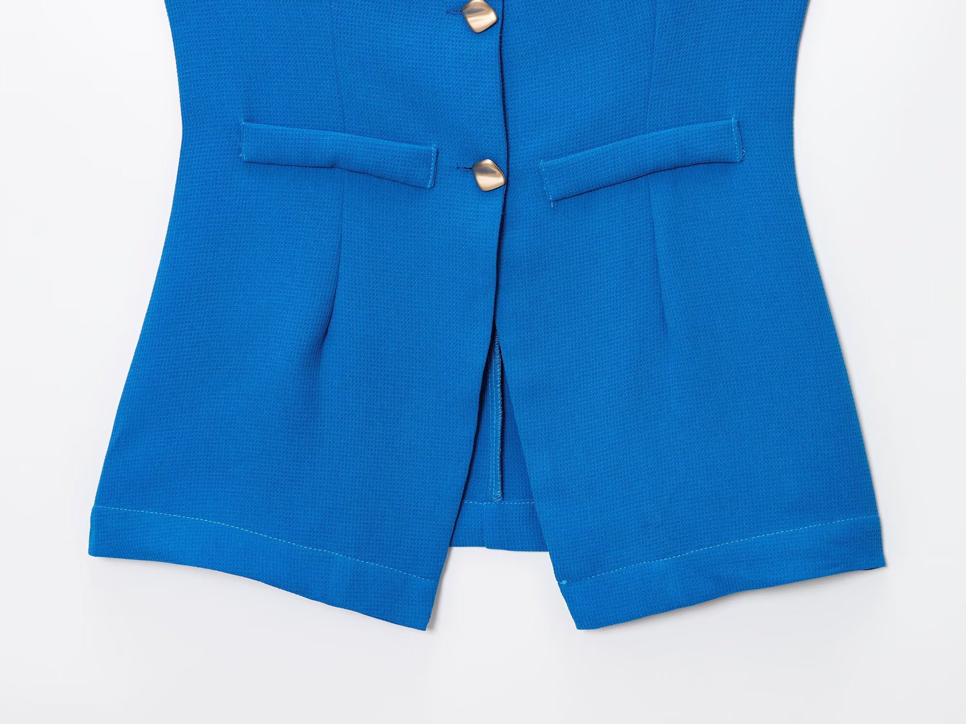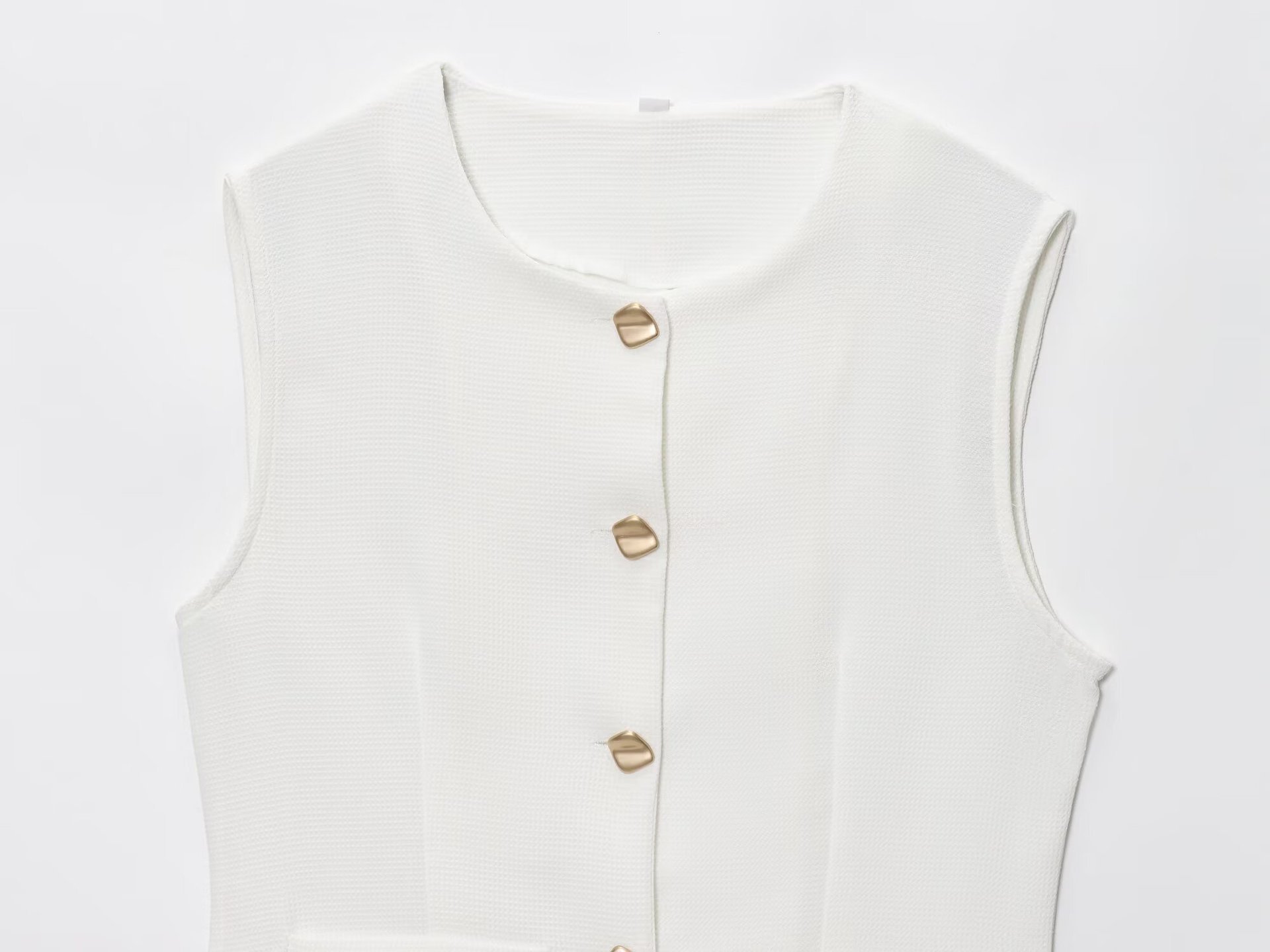 국경 간 여성 의류 2025 여름 새로운 유럽과 미국의 패션 라운드 넥 싱글 브레스트 조끼 조끼 코트 탑 여성스토어 가기