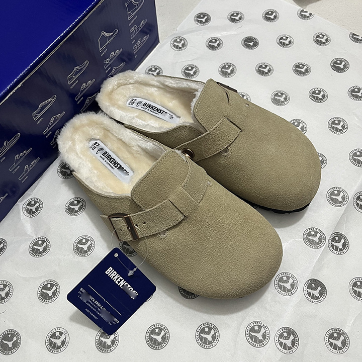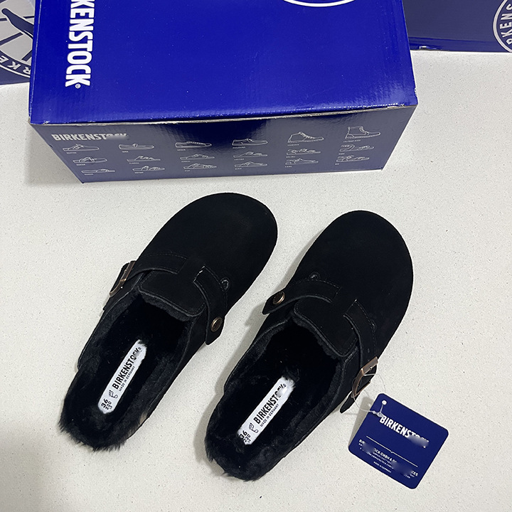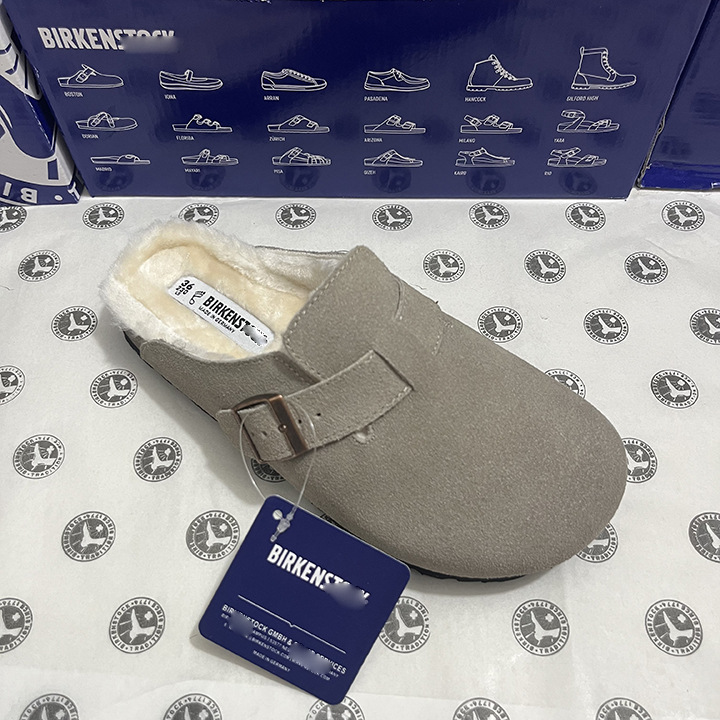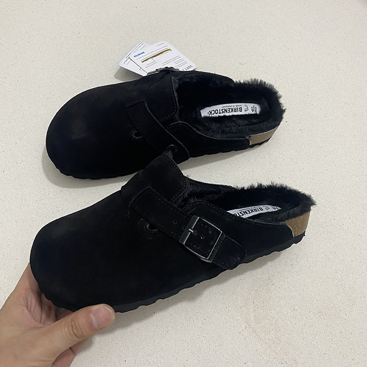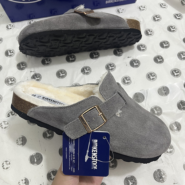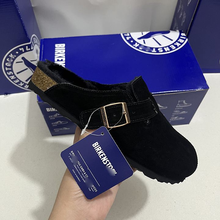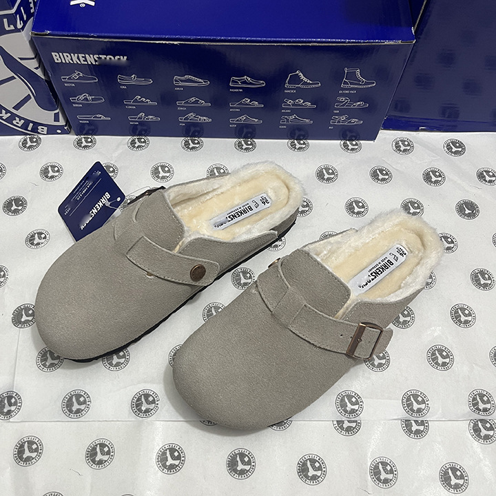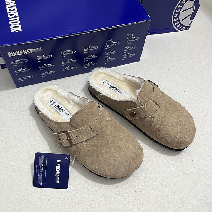 여성용 Birkenstock 슬리퍼 2025 가을 겨울 새로운 스타일 플러시 모피 발가락 반 슬리퍼 부드러운 밑창 슬립 온 게으른 슬리퍼스토어 가기