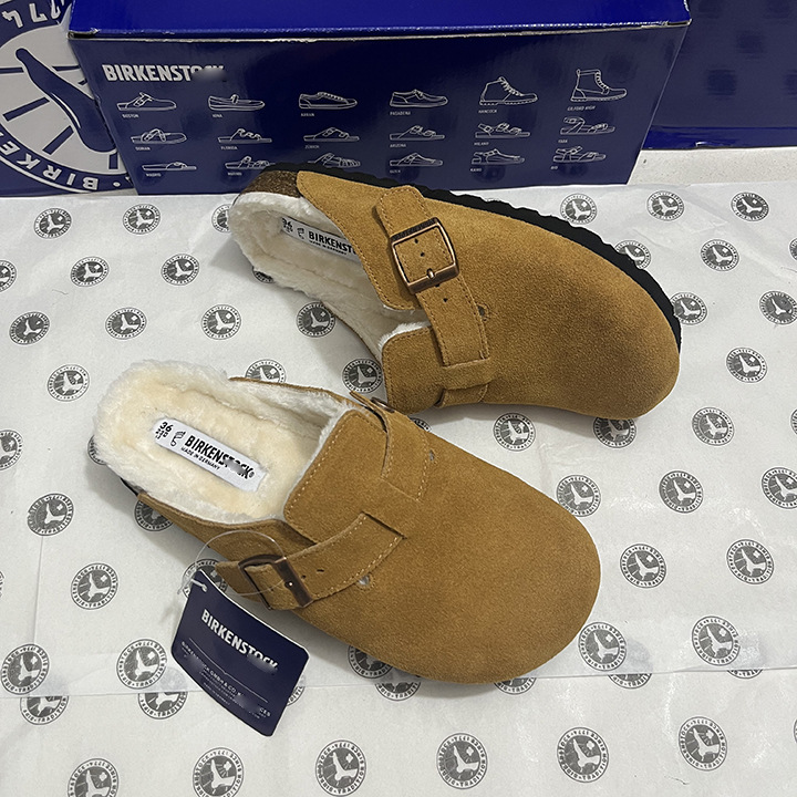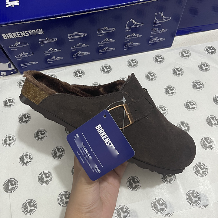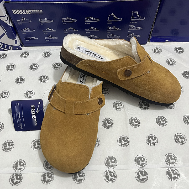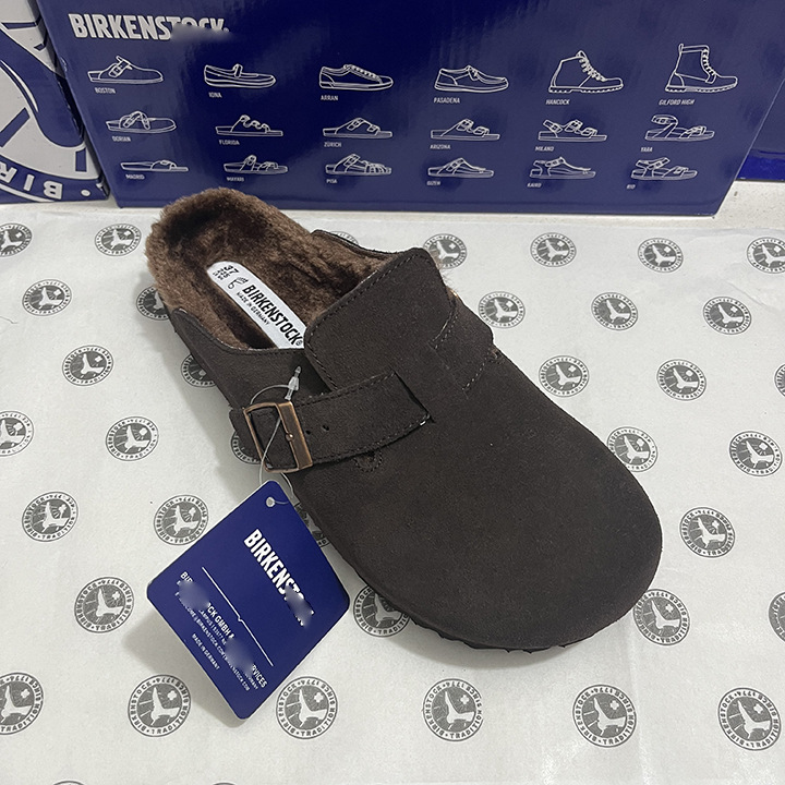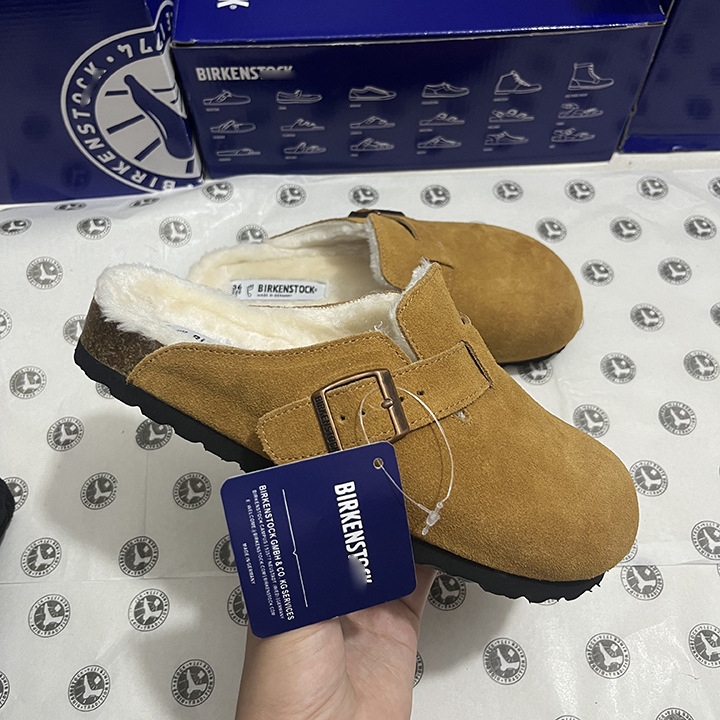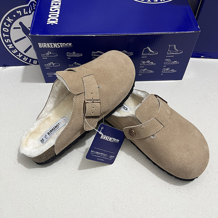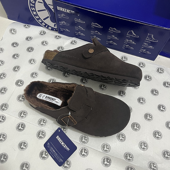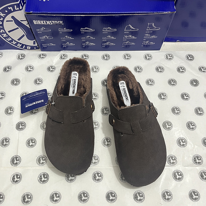 여성용 Birkenstock 슬리퍼 2025 가을 겨울 새로운 스타일 플러시 모피 발가락 반 슬리퍼 부드러운 밑창 슬립 온 게으른 슬리퍼스토어 가기