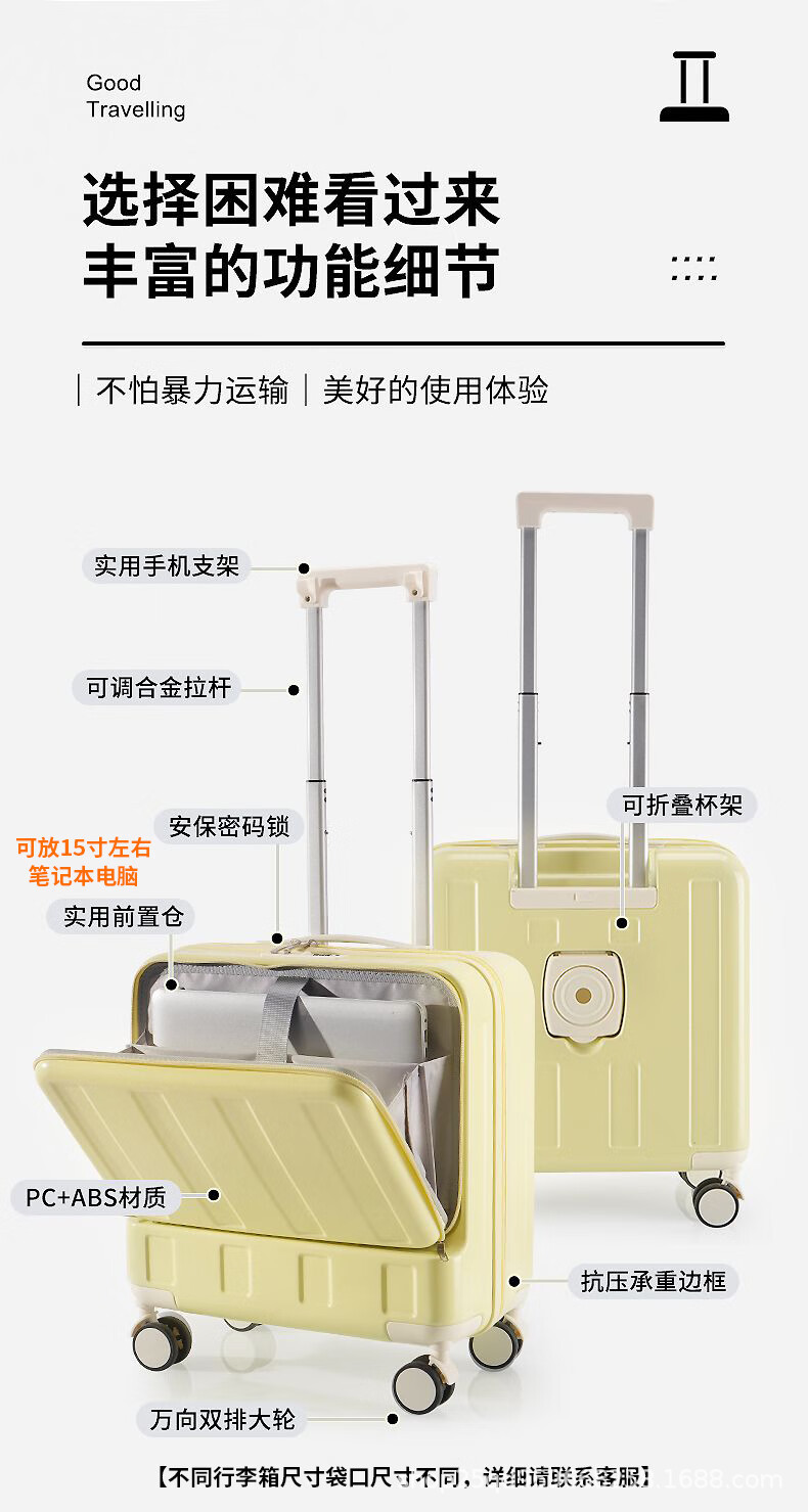 여행가방 18inch 기내 반입 가능 전면 개폐형 여행용 트롤리 가방 비행기 탑승 가능 가방 단거리 출장용 수납가방스토어 가기