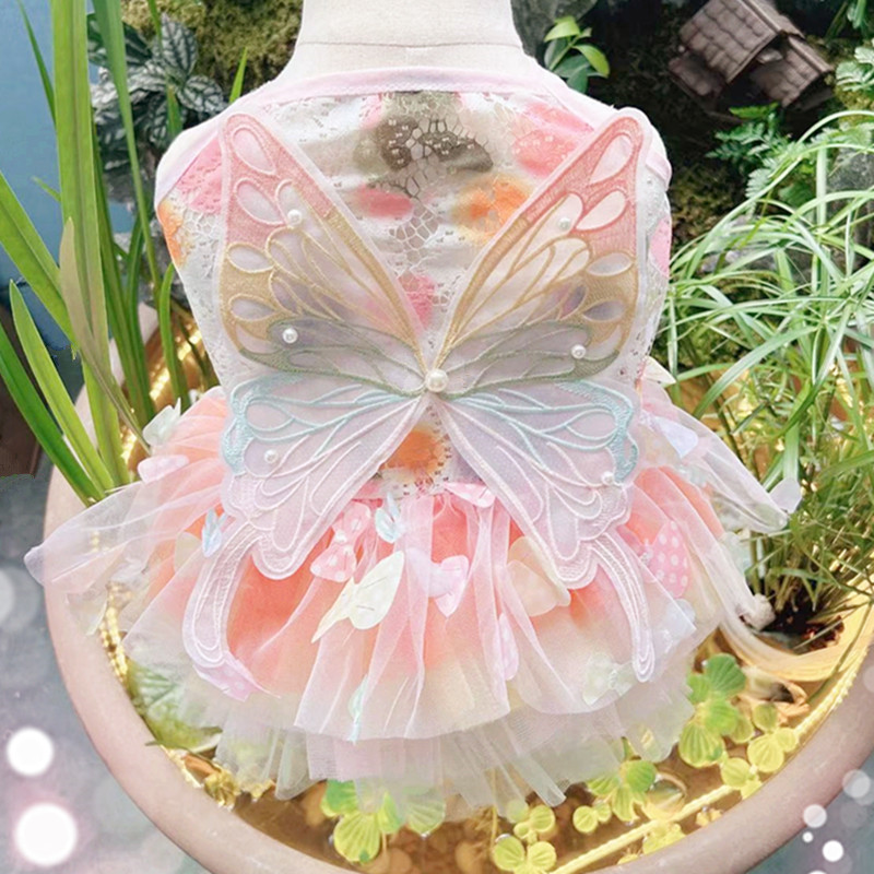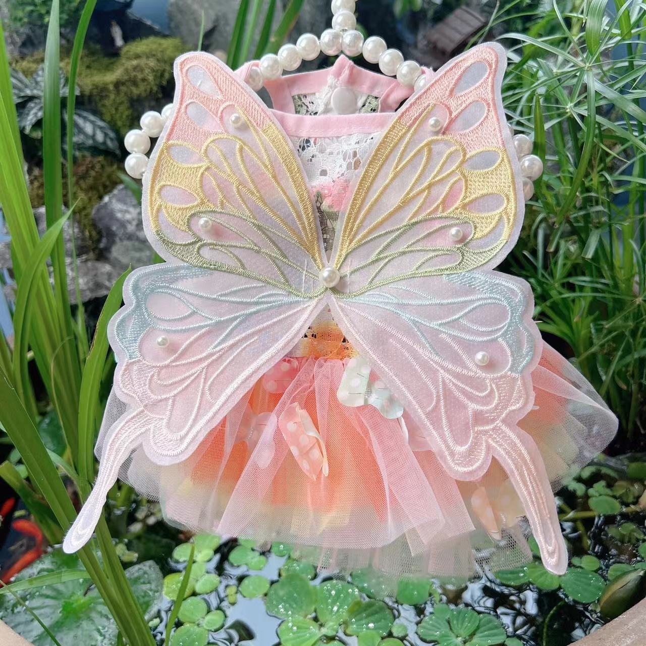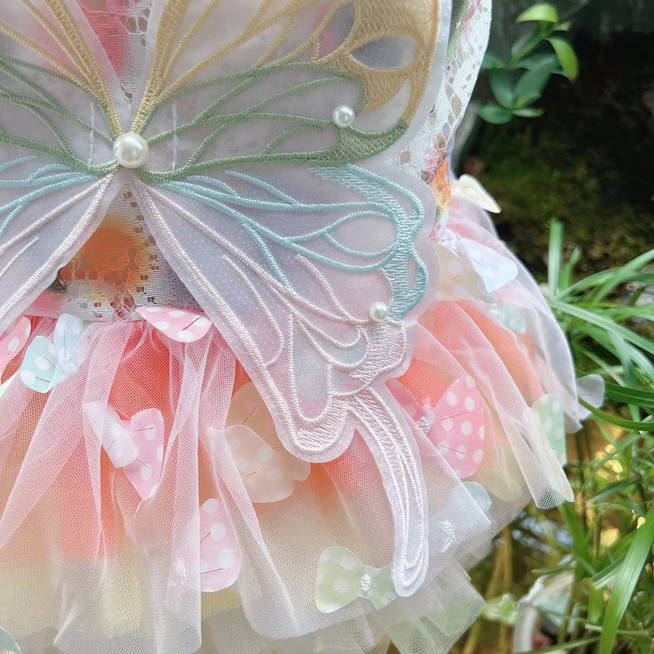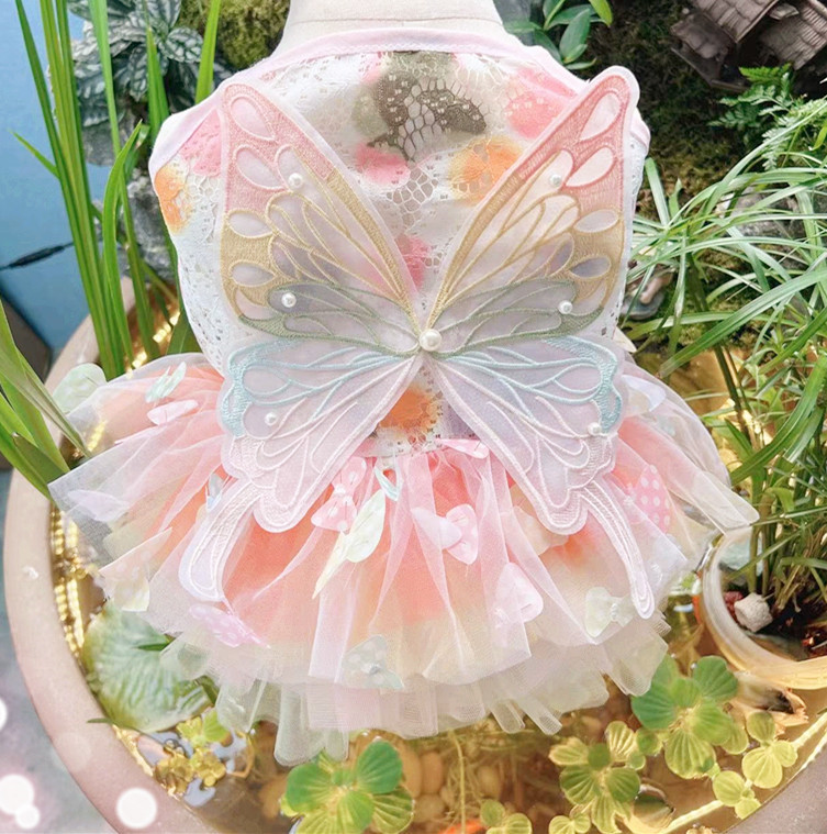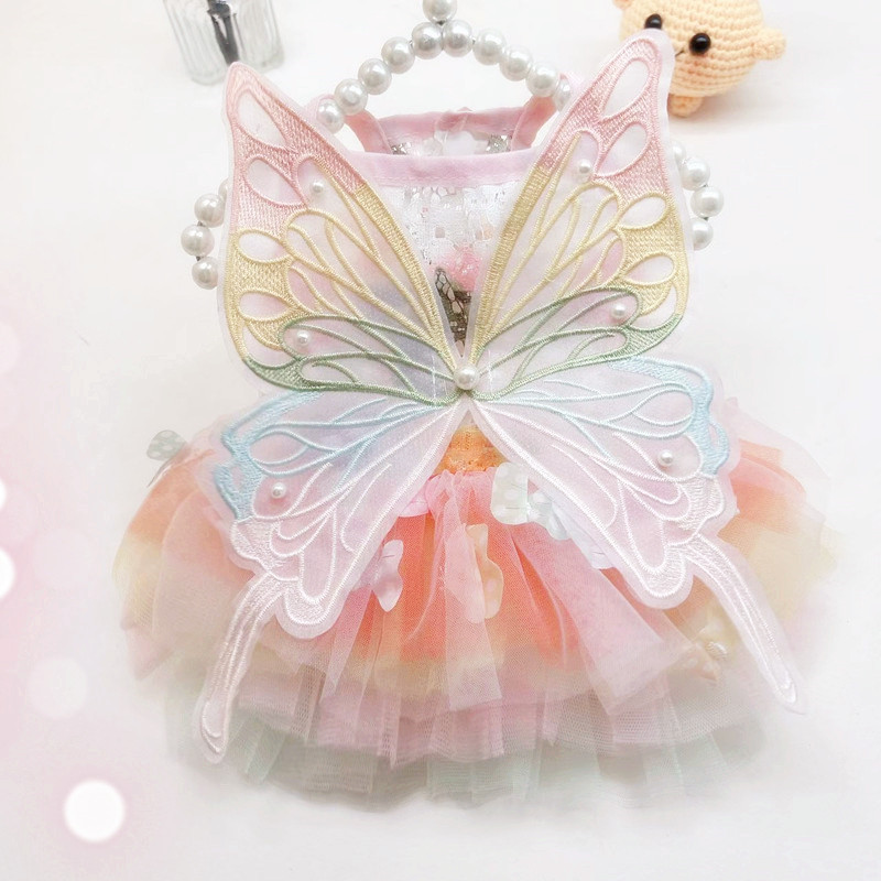 강아지 옷 여름용 얇은 고양이 공주 드레스 무지개 나비 퍼프 스커트 애완동물 의류 드레스 용품스토어 가기
