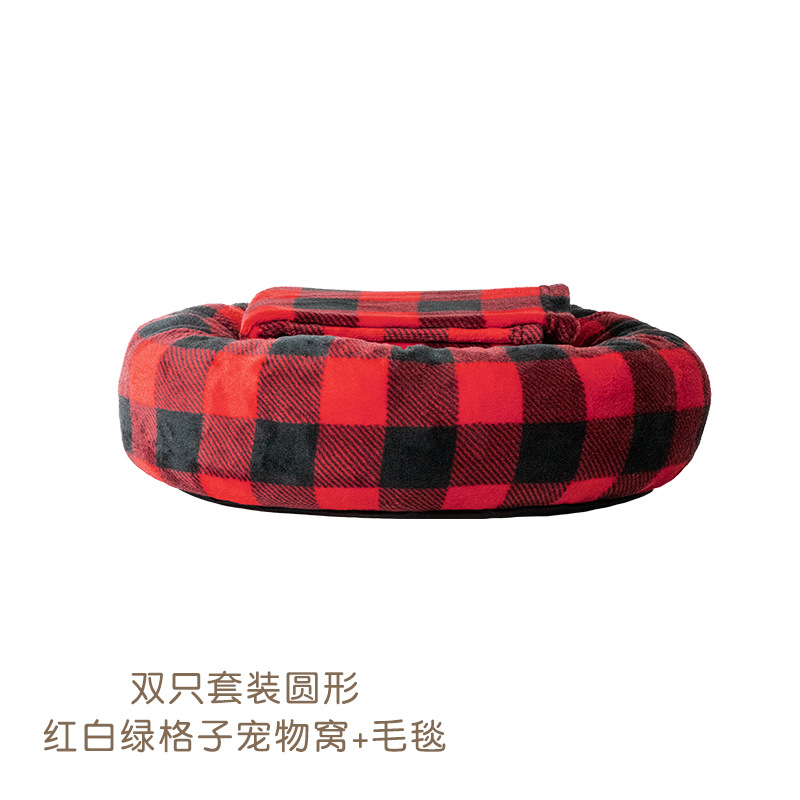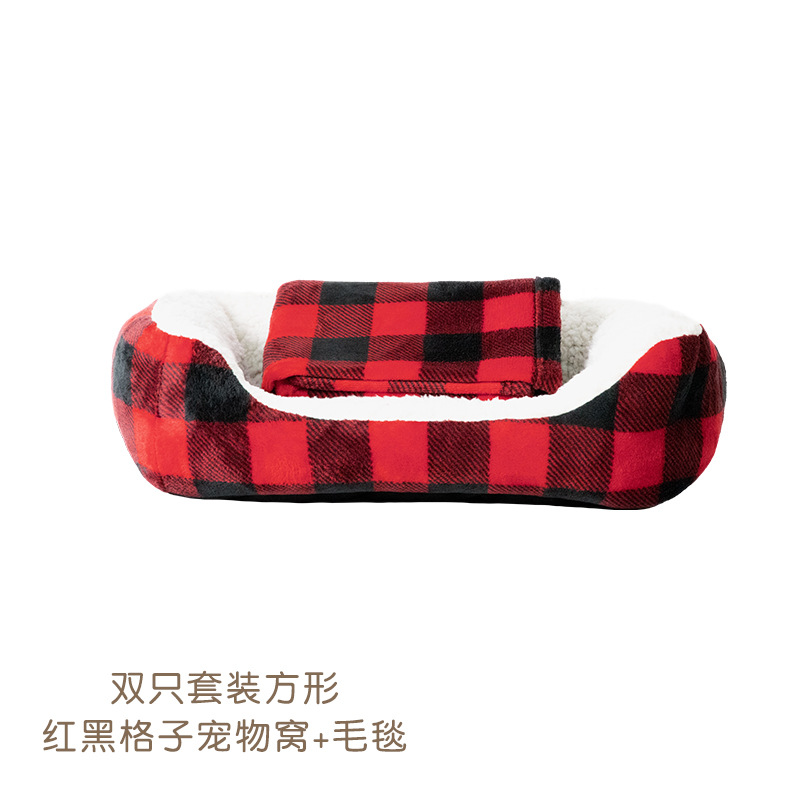 • 사각 레드 & 블랙 체크 무늬 (네스트 + 담요)