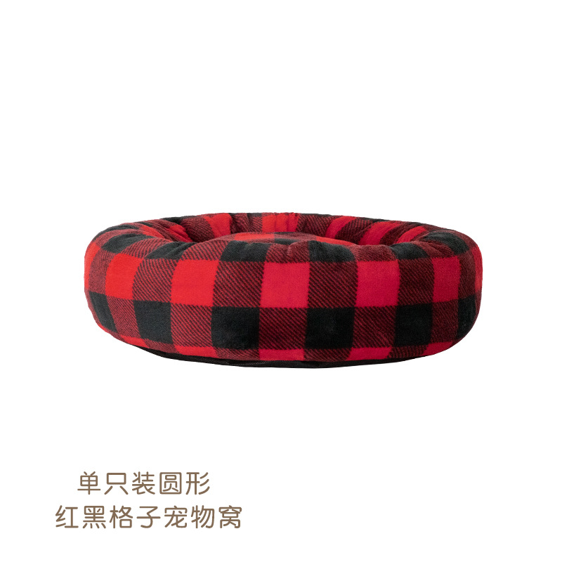 • 둥근 빨간색과 검은색 격자 무늬(둥지 + 담요)