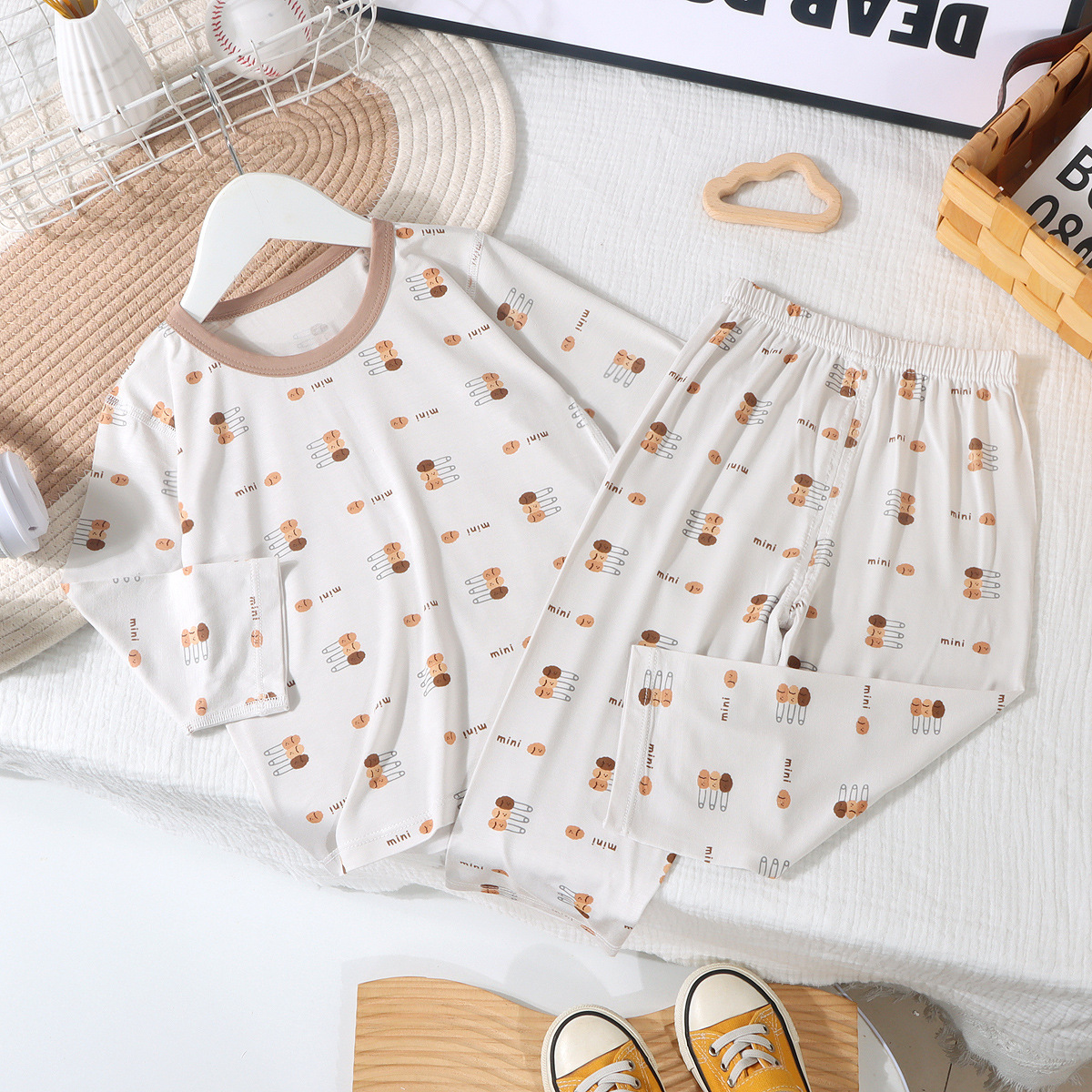 아동 잠옷 여름 얇은 텐셀 모달 리오셀 소년과 소녀 중간 긴팔 에어컨 의류 가정 의류스토어 가기