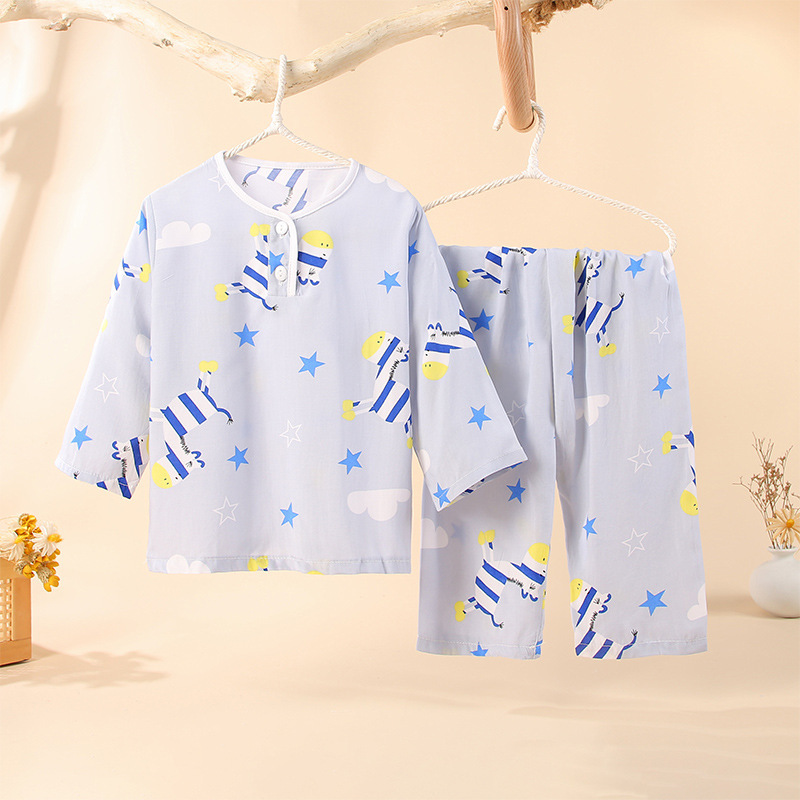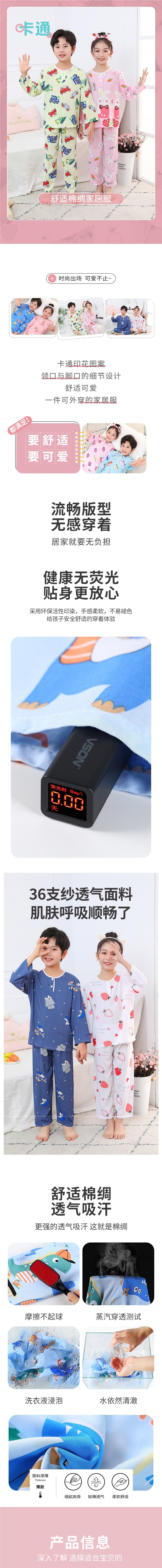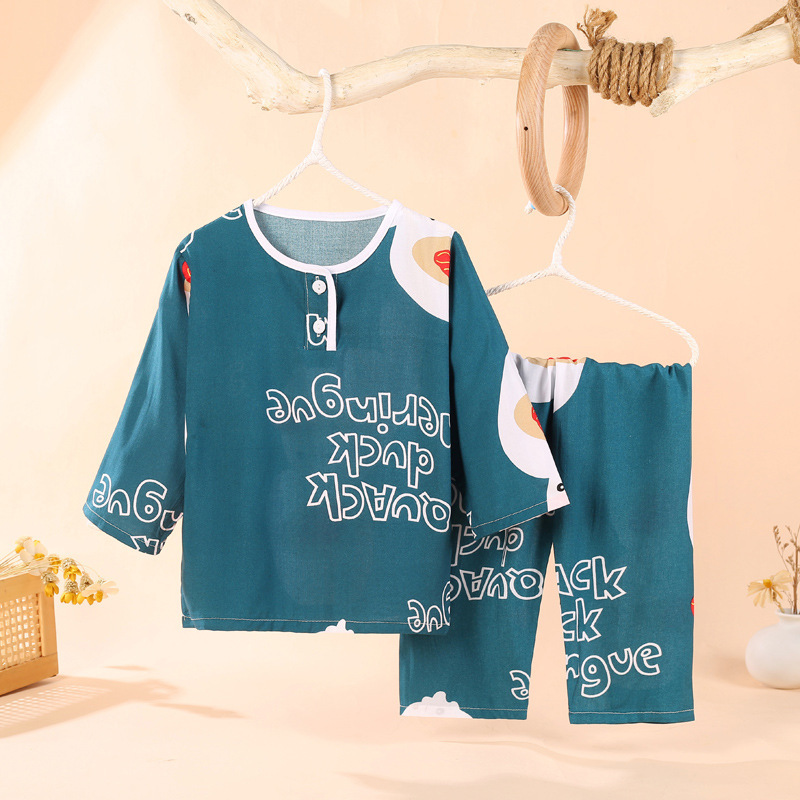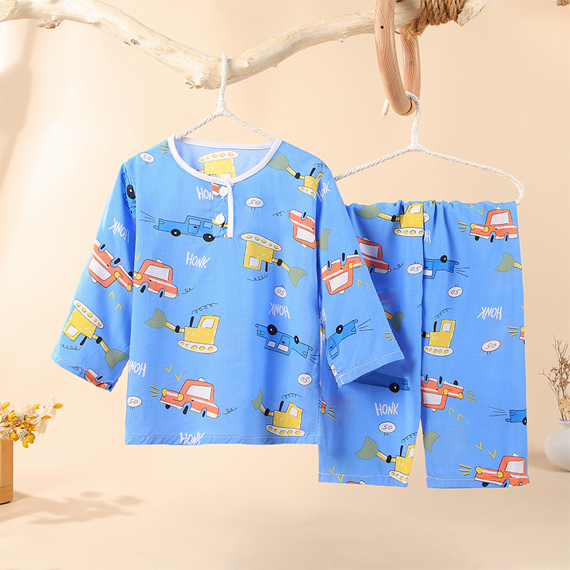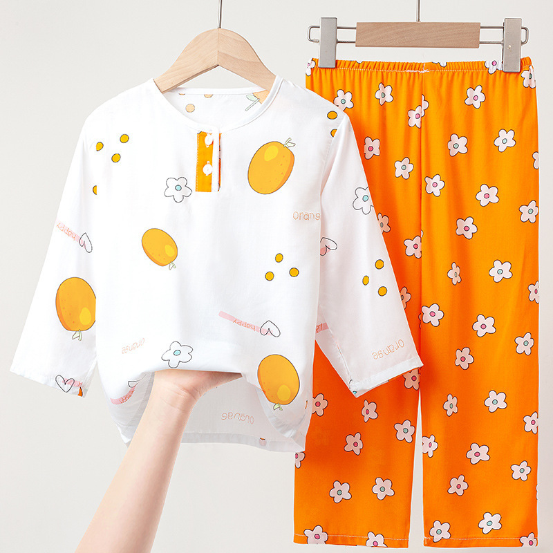 여름 면 실크 어린이 잠옷 소년과 소녀를위한 긴팔 얇은 면 실크 소녀 만화 가정 옷스토어 가기