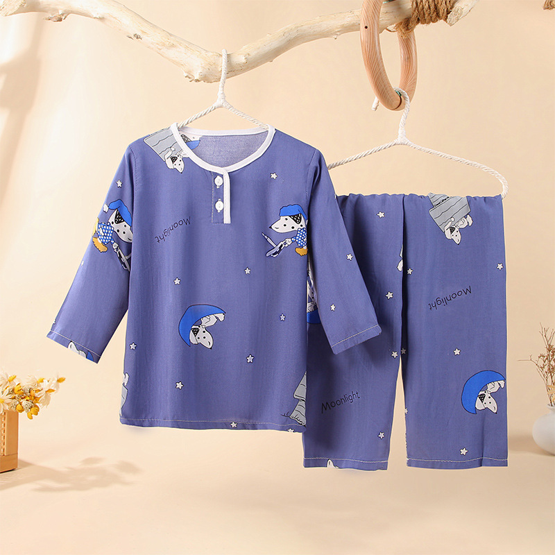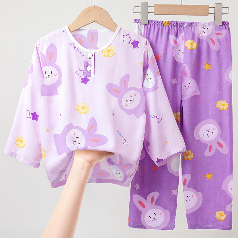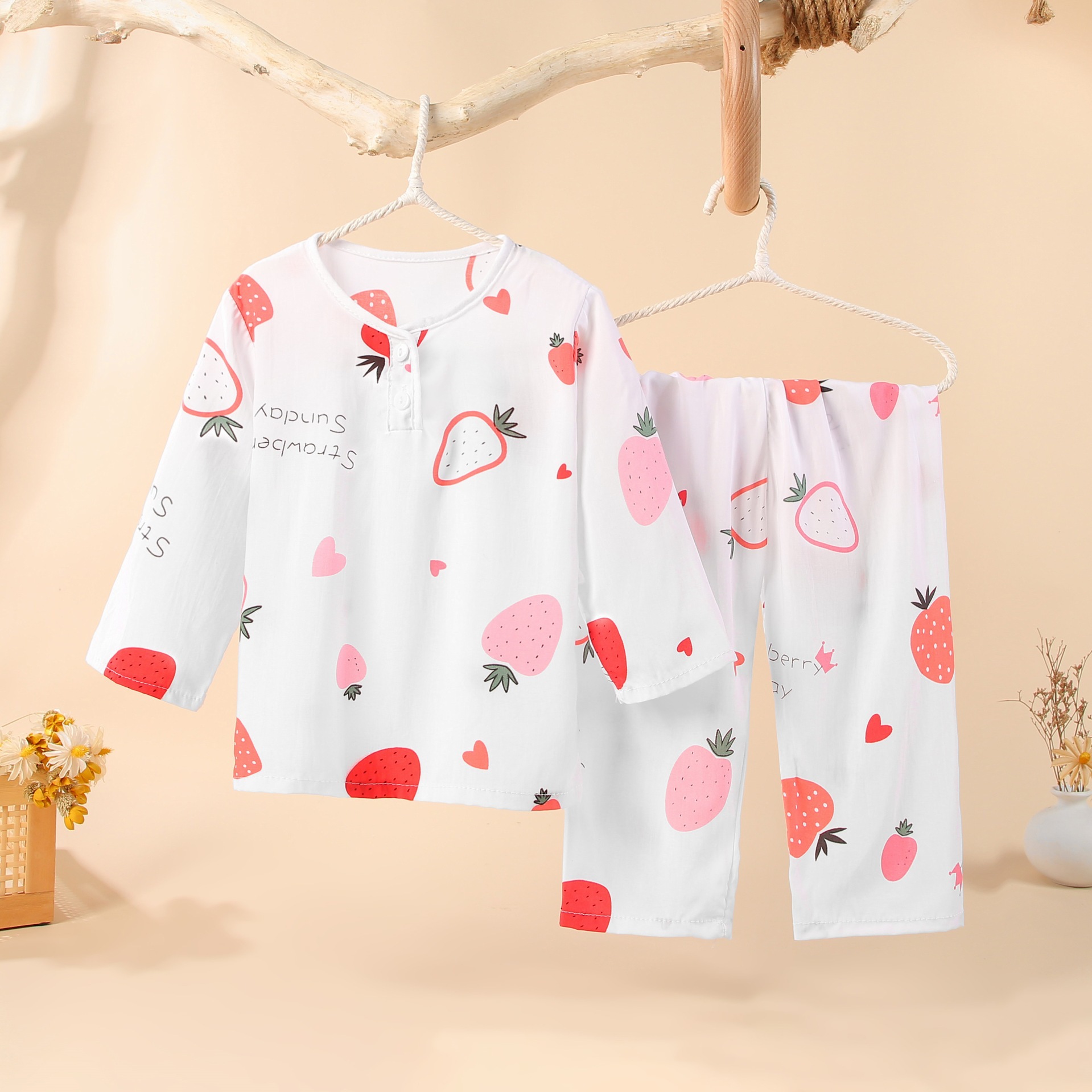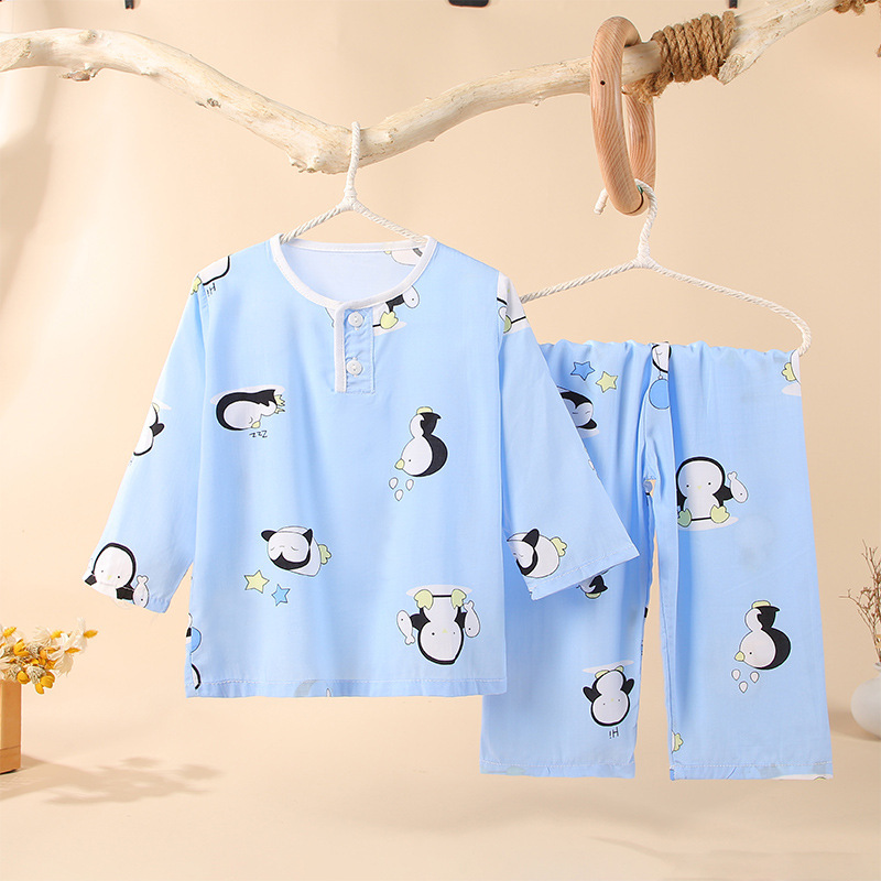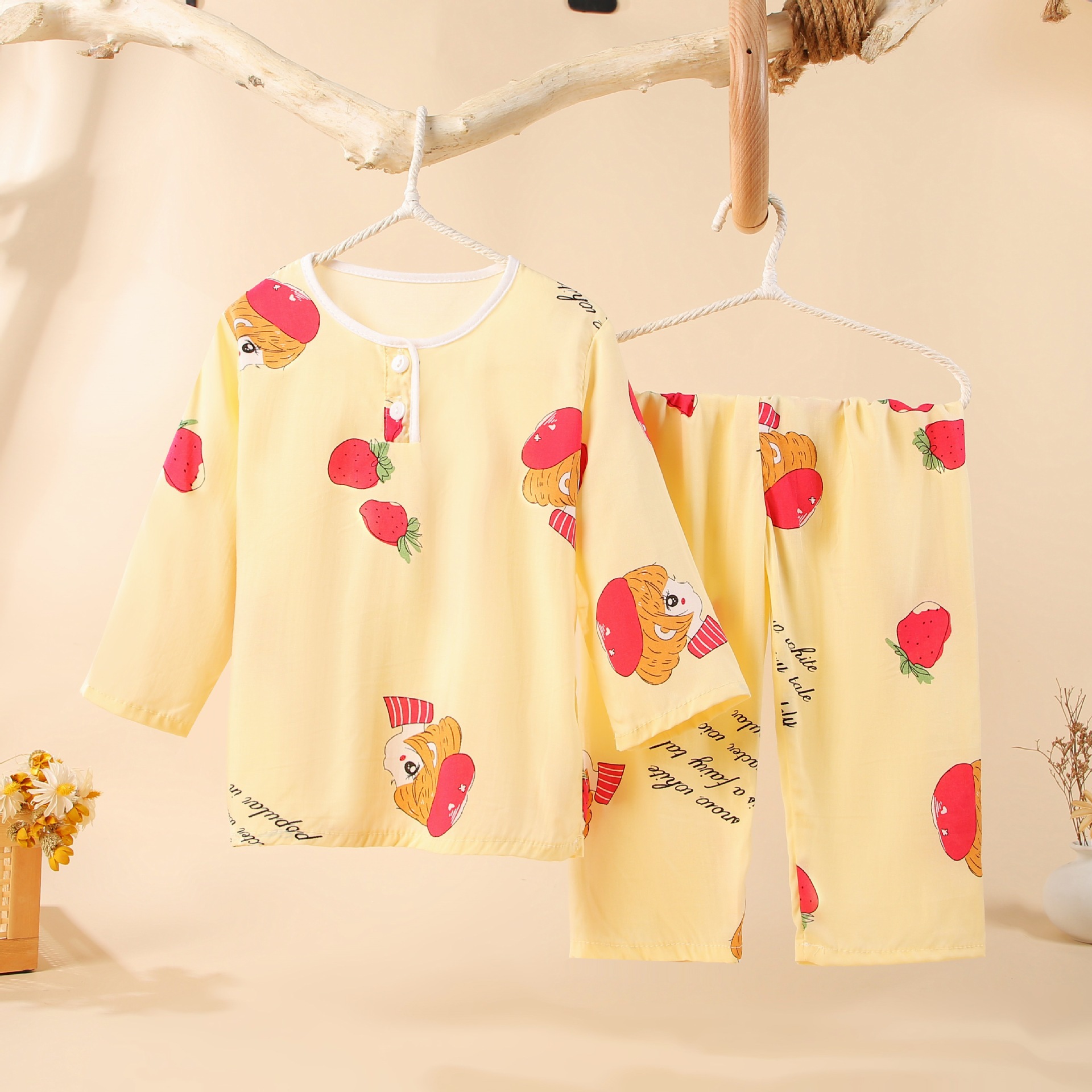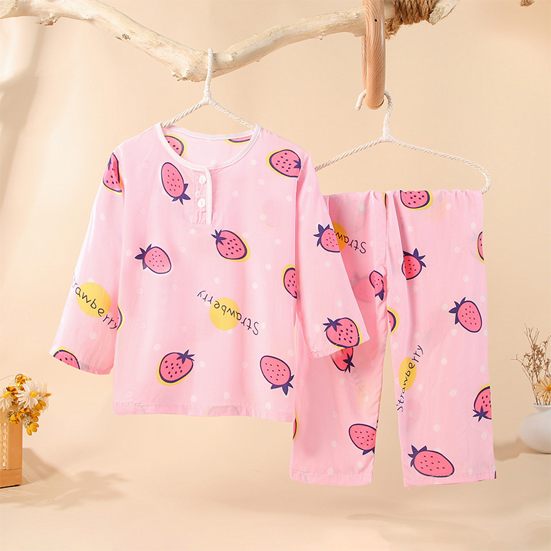 여름 면 실크 어린이 잠옷 소년과 소녀를위한 긴팔 얇은 면 실크 소녀 만화 가정 옷