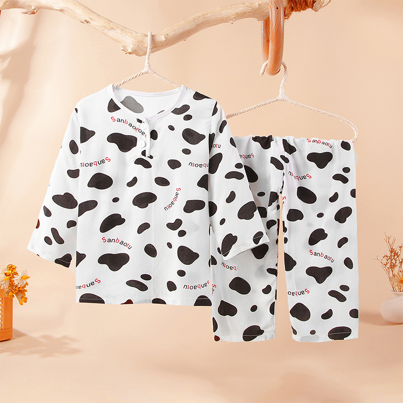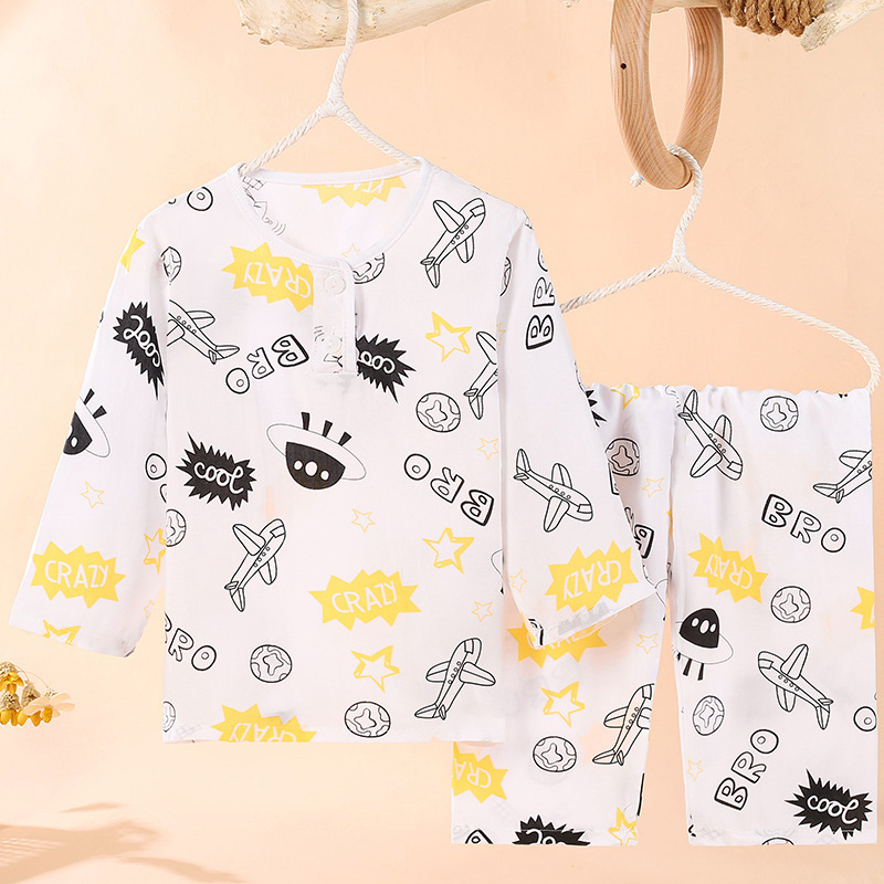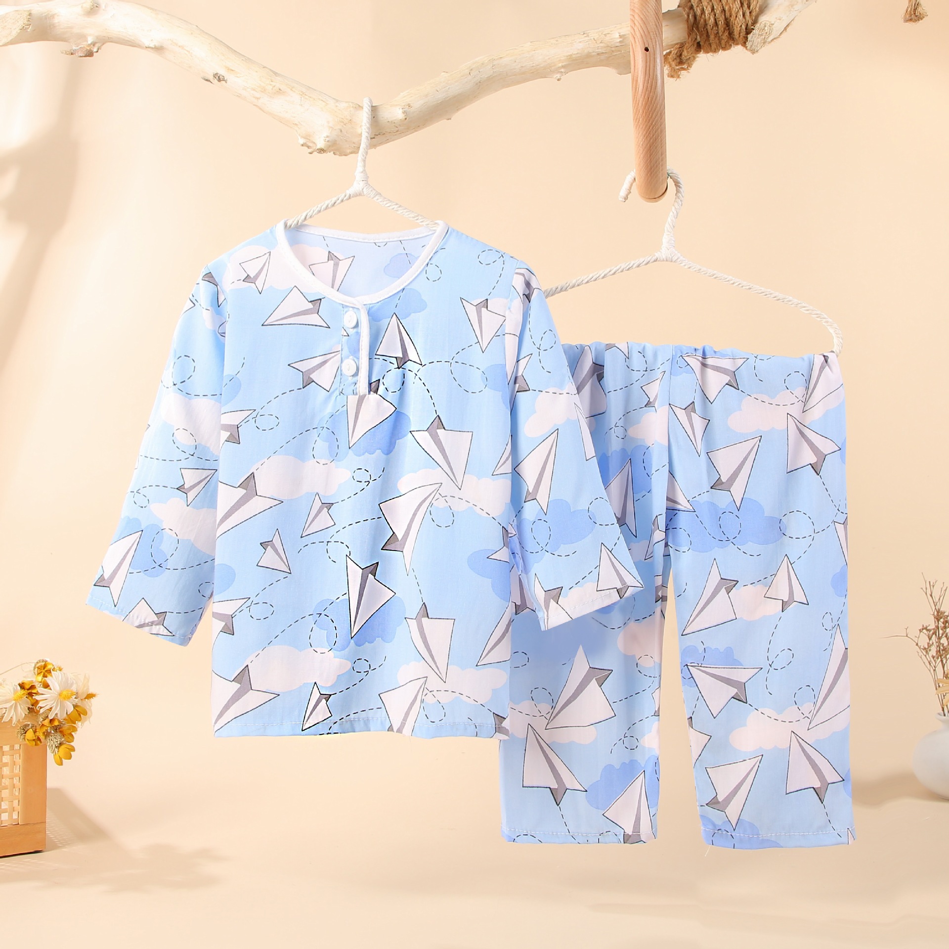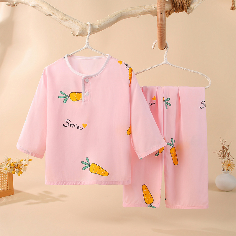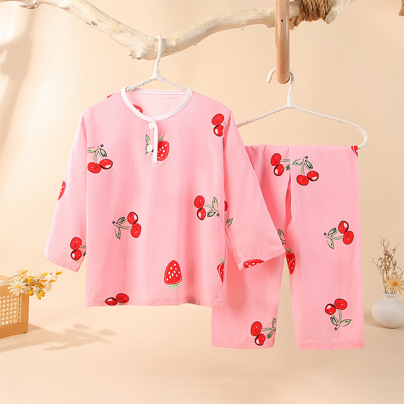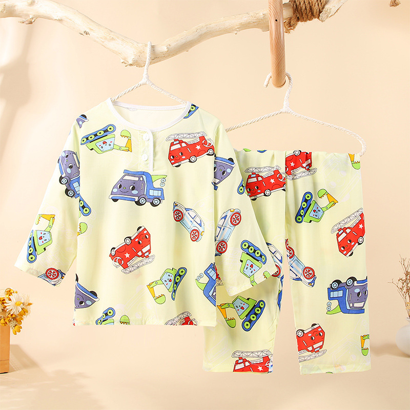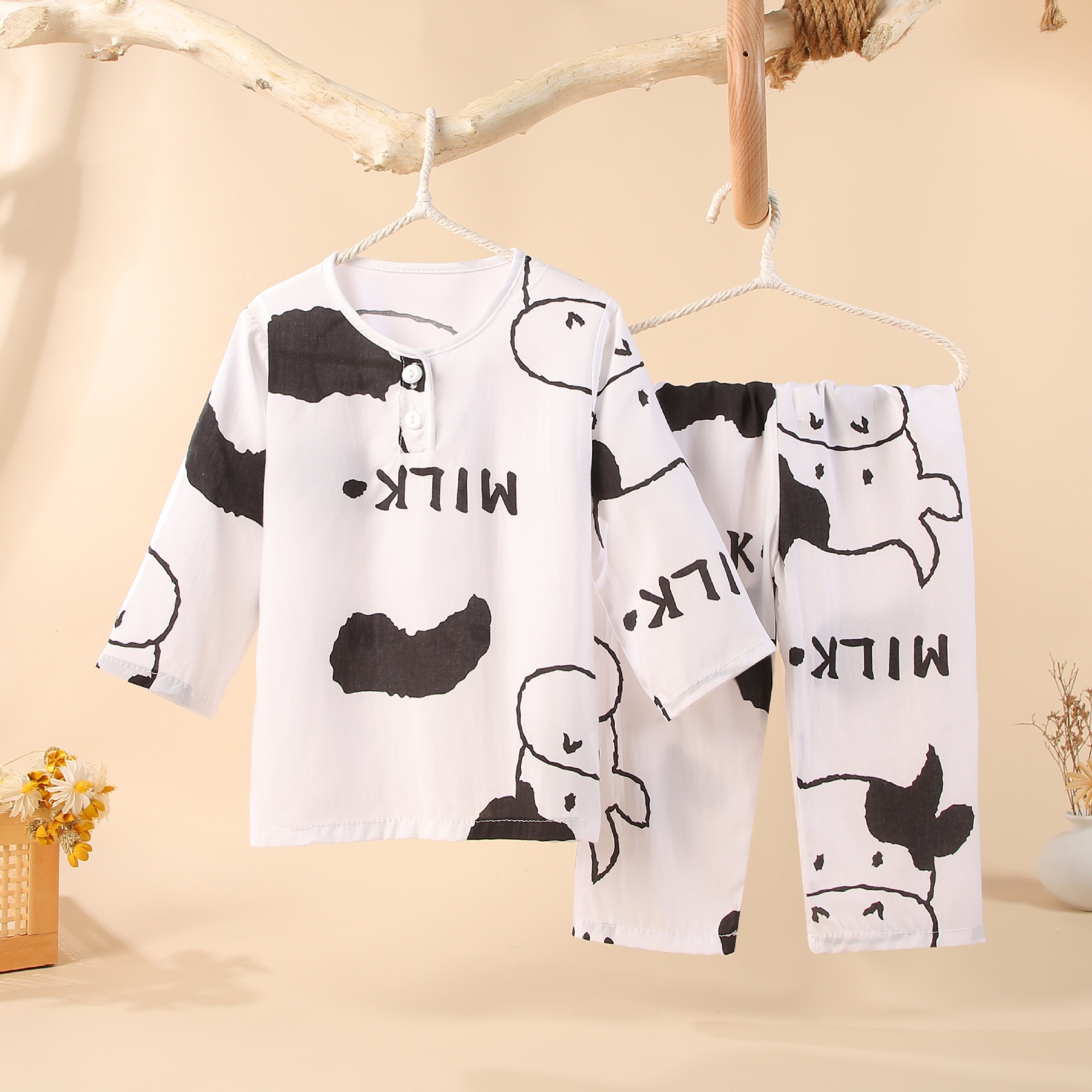 여름 면 실크 어린이 잠옷 소년과 소녀를위한 긴팔 얇은 면 실크 소녀 만화 가정 옷