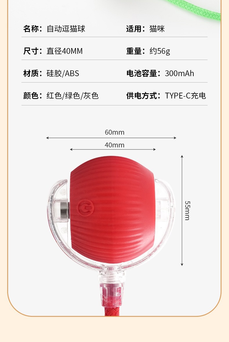 • 빨간 고양이 공★깨우지 않음 [3단계 조절 가능]--(고양이 놀리는 밧줄 포함)