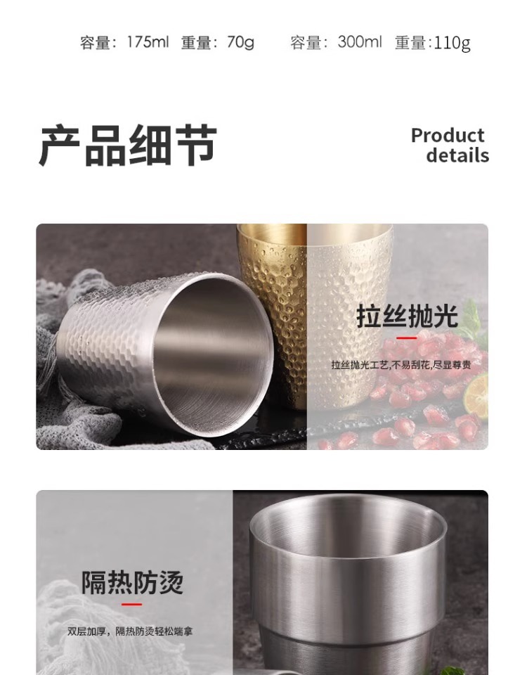 韩式304不锈钢水杯双层果汁啤酒杯防摔冷饮杯子餐厅烤肉店茶水杯스토어 가기