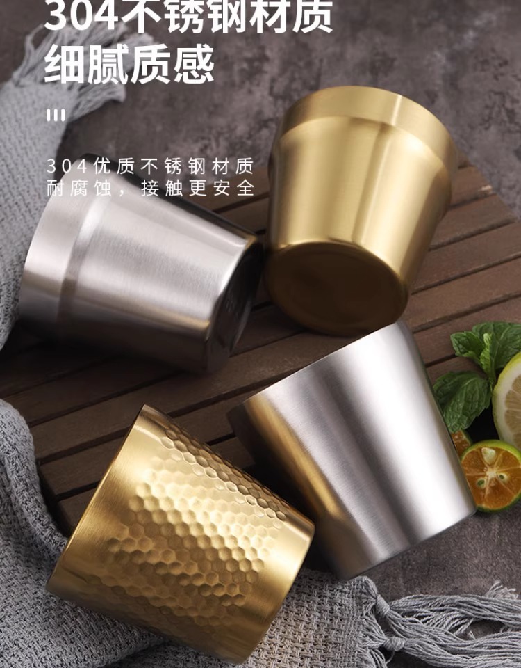 韩式304不锈钢水杯双层果汁啤酒杯防摔冷饮杯子餐厅烤肉店茶水杯
