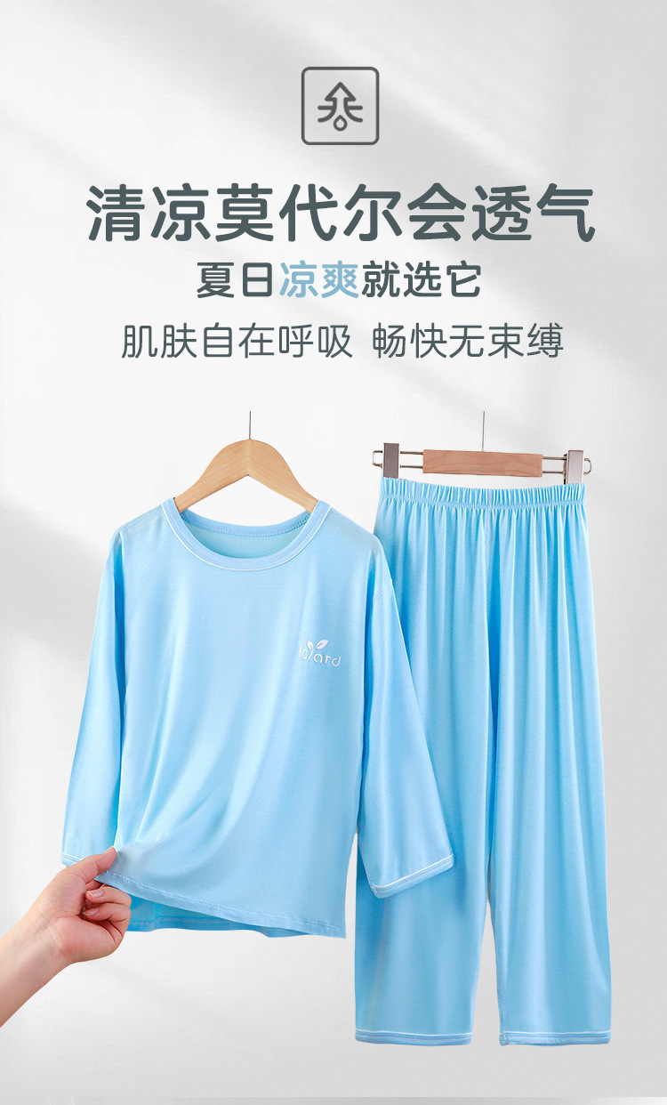 아동용 모달 양복, 여름용 얇은 남아용 긴팔 에어컨 양복, 중대형 아동용 가정복, 잠옷 세트