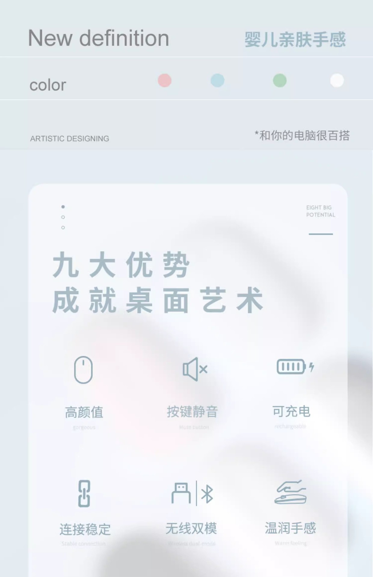 소녀들을 위한 크로스보더 블루투스 무선 마우스, 소형 손 충전, 듀얼 모드 5.2 휴대폰 및 태블릿 범용 광전 마우스 C 포트스토어 가기