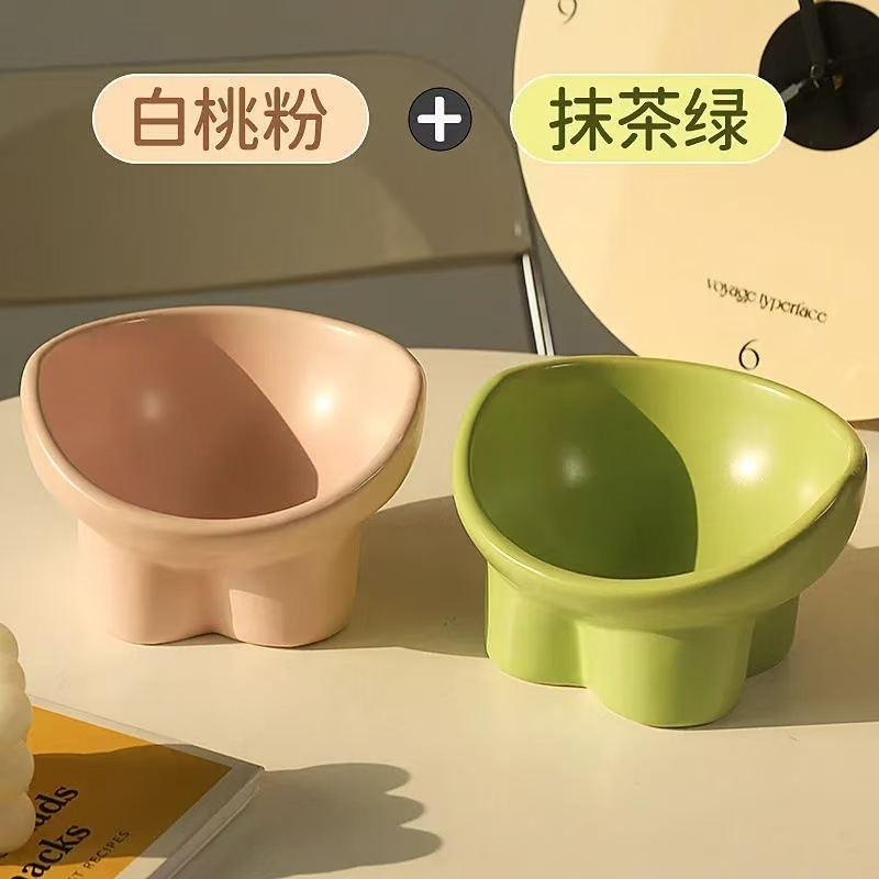 고양이밥그릇, 대용량 고양이밥그릇, 먹고 마시는 높은 발목 보호대, 밥그릇, 강아지밥그릇, 뒤집히는 방지 크림색 경사그릇