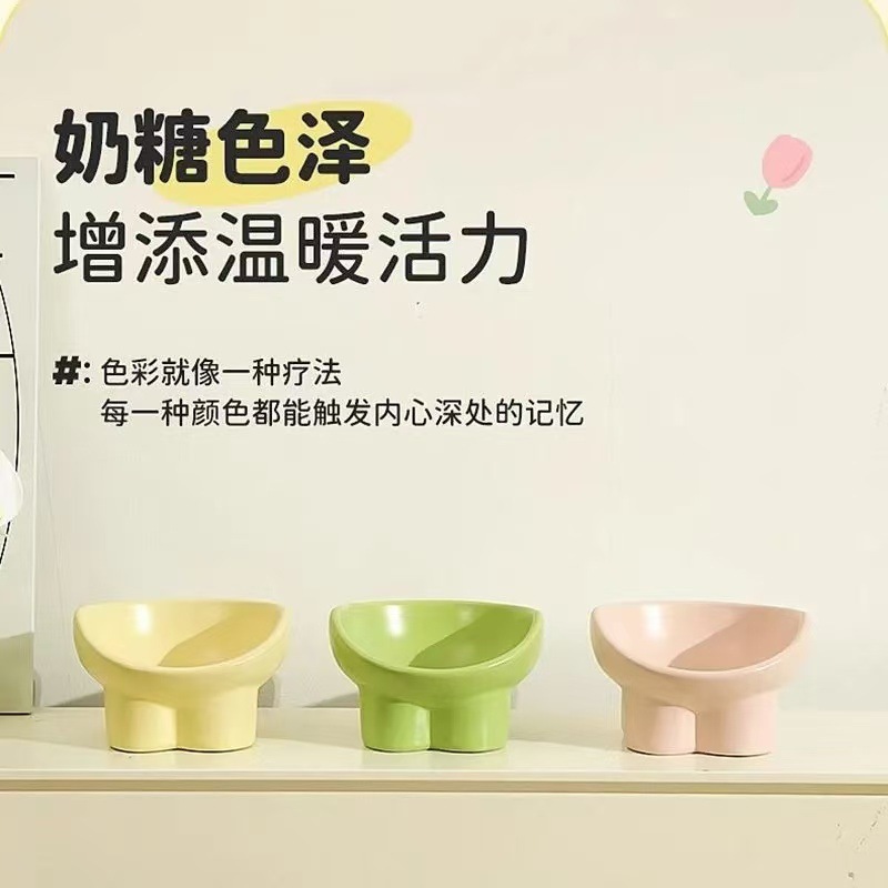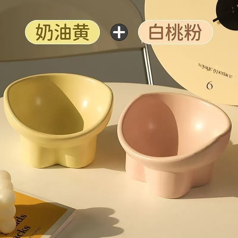 고양이밥그릇, 대용량 고양이밥그릇, 먹고 마시는 높은 발목 보호대, 밥그릇, 강아지밥그릇, 뒤집히는 방지 크림색 경사그릇스토어 가기