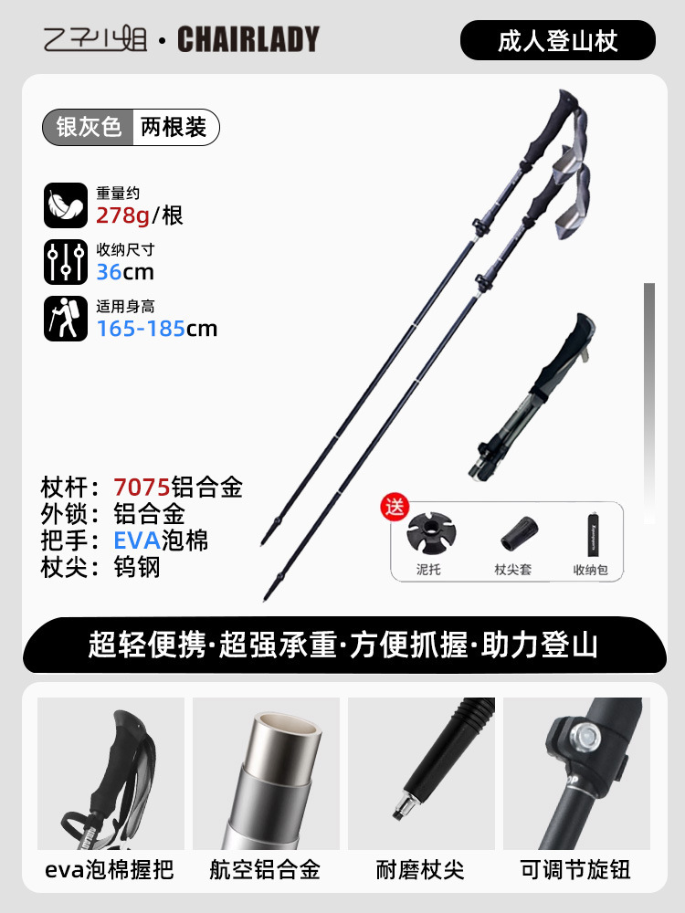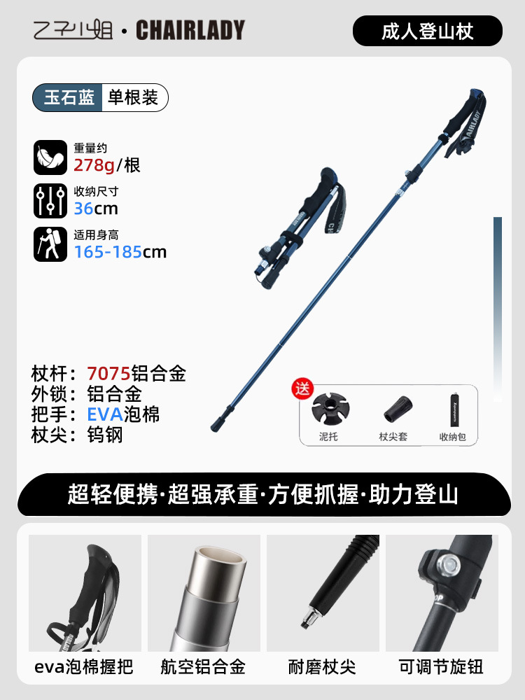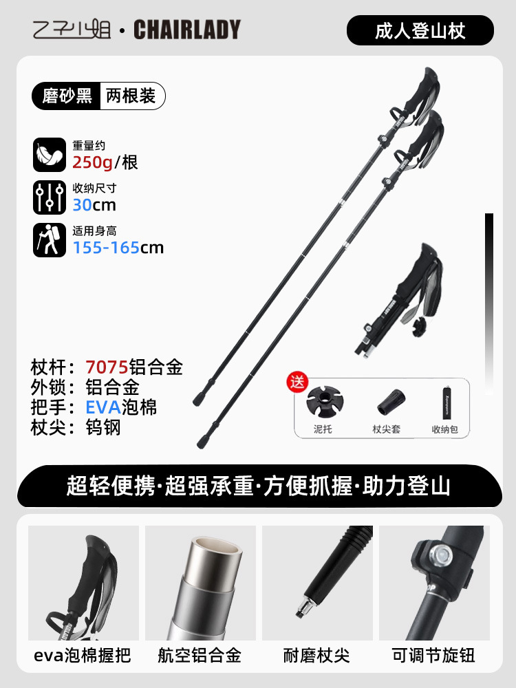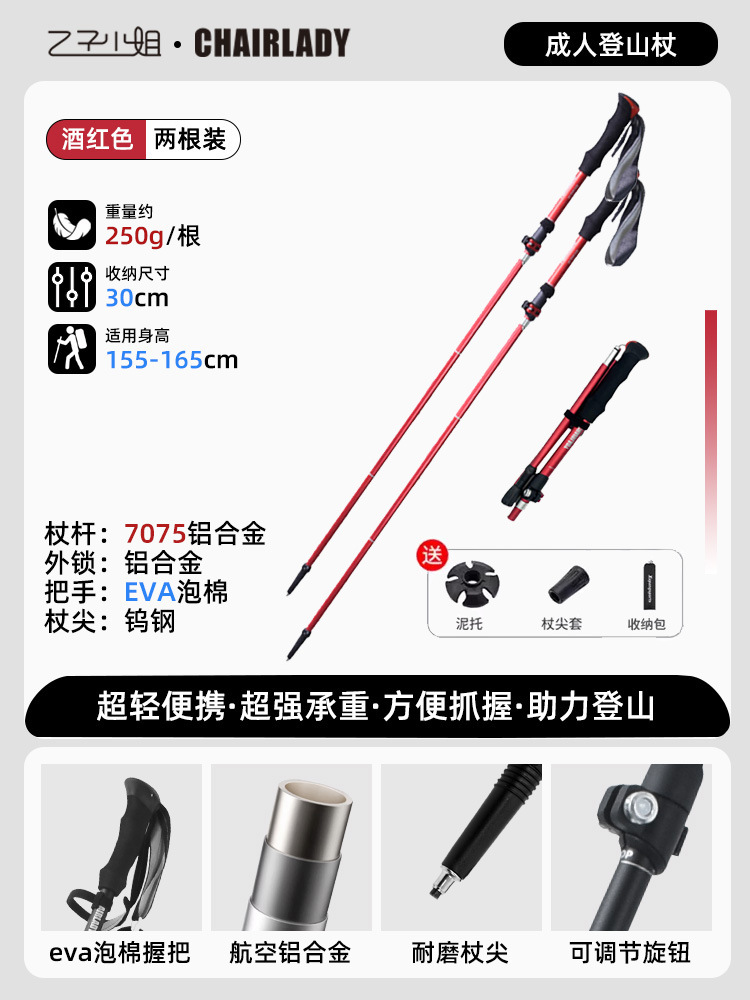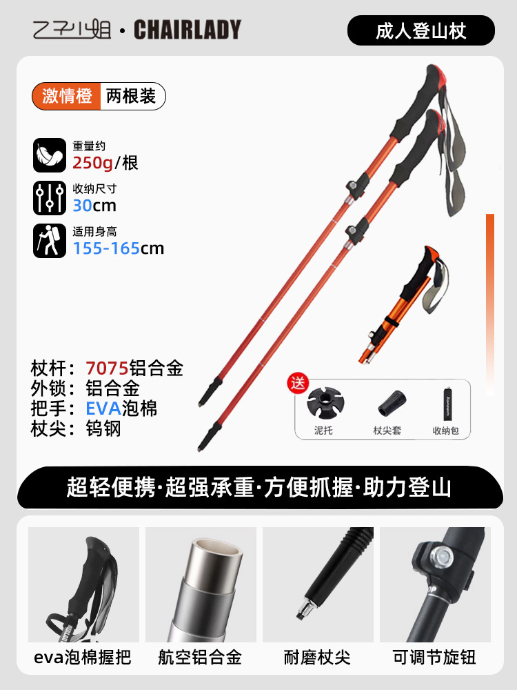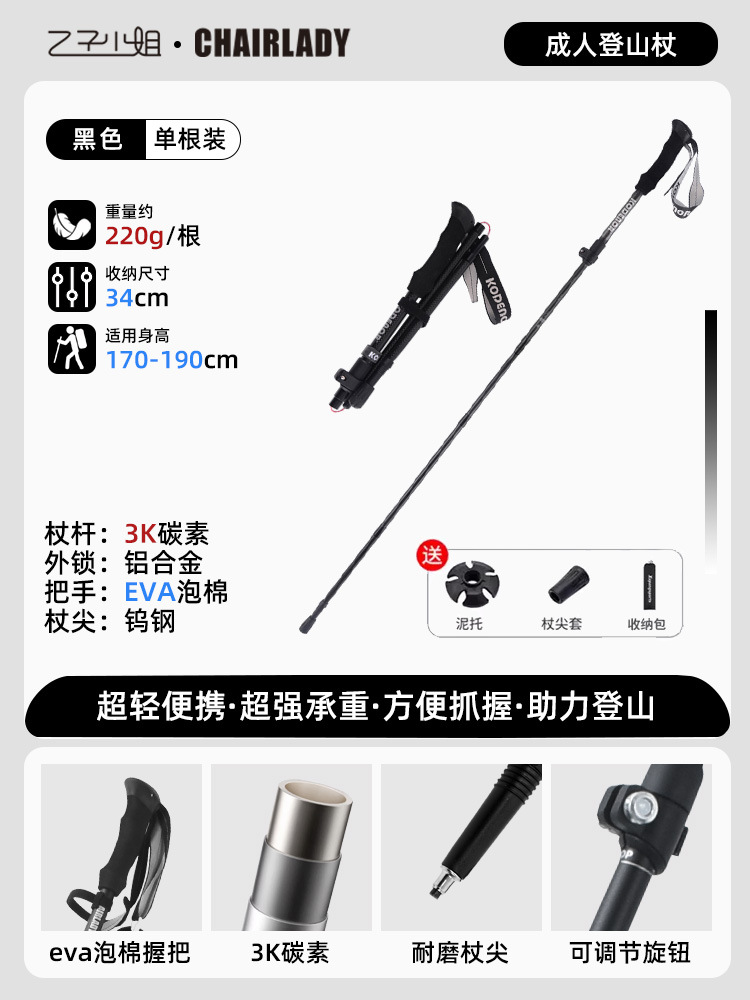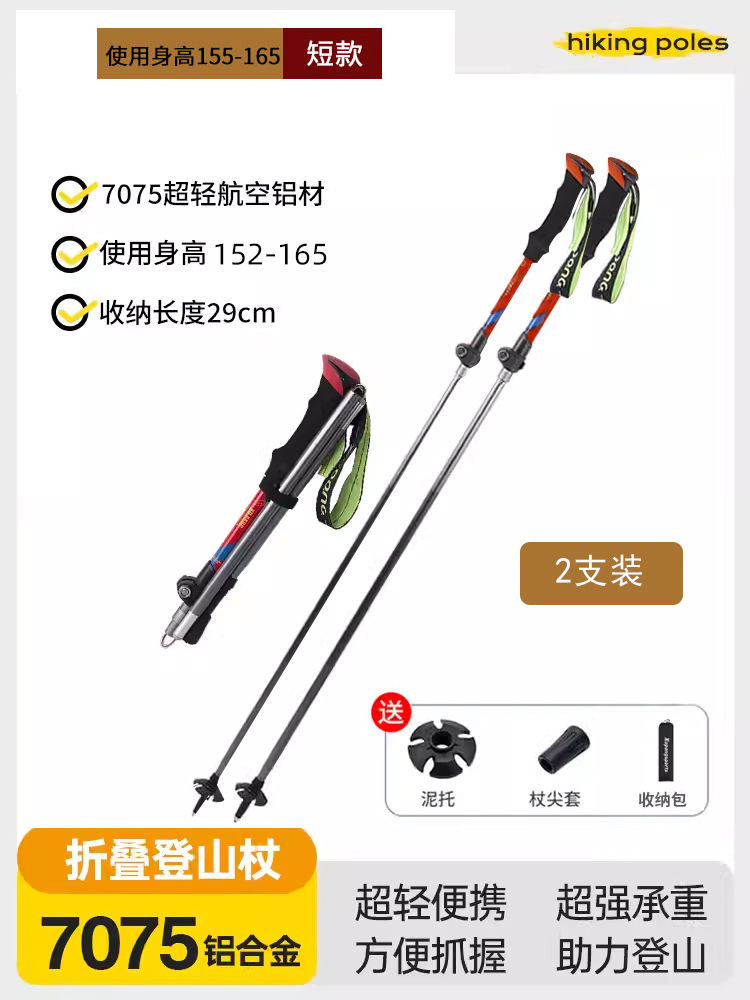 경량 개폐식 접이식 하이킹 스틱 야외 하이킹 휴대용 어린이 및 여성 미니 탄소 지팡이 등산 장비