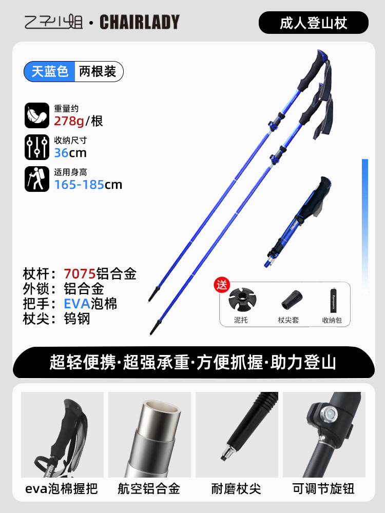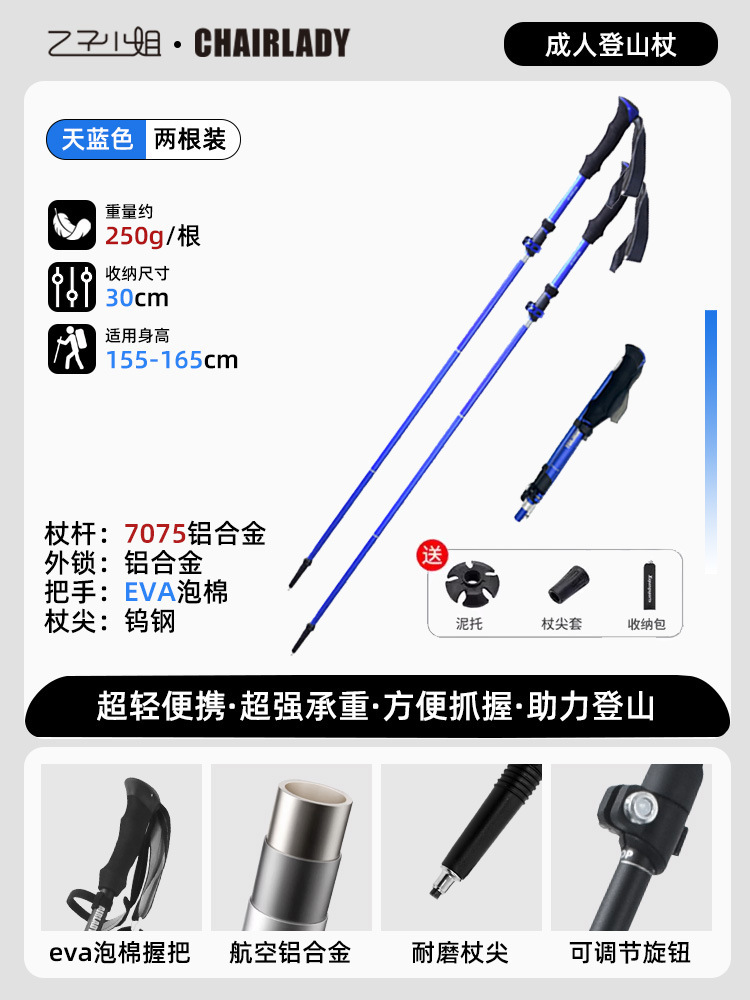 경량 개폐식 접이식 하이킹 스틱 야외 하이킹 휴대용 어린이 및 여성 미니 탄소 지팡이 등산 장비스토어 가기