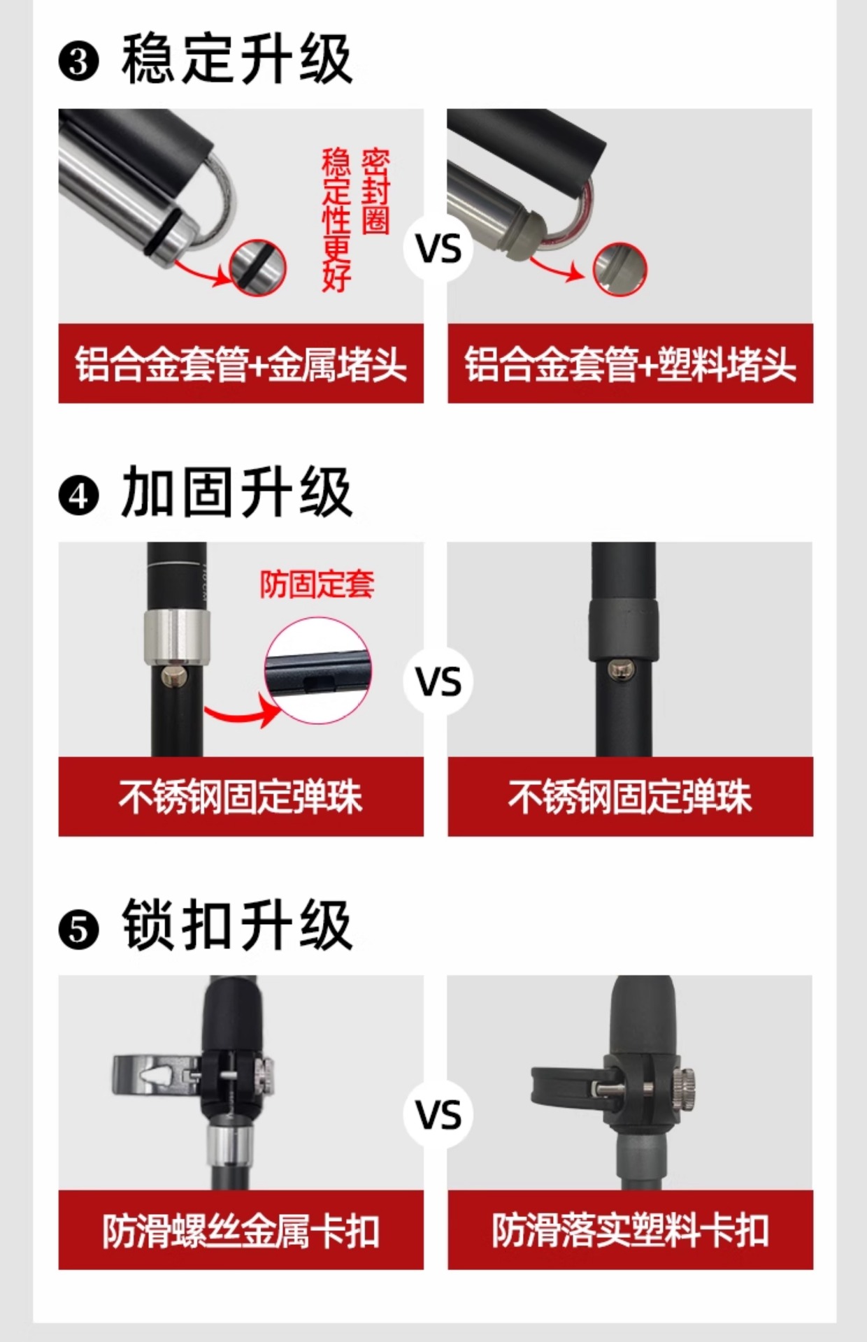 • 2팩 - 접이식 지팡이 [높이 165-185] - 빨간색