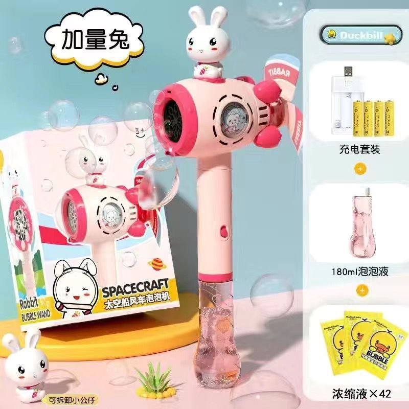 • 배터리 모델 [토끼 풍차 버블 머신] 8홀 버블 - 180ml 버블 워터 + 42 농축액