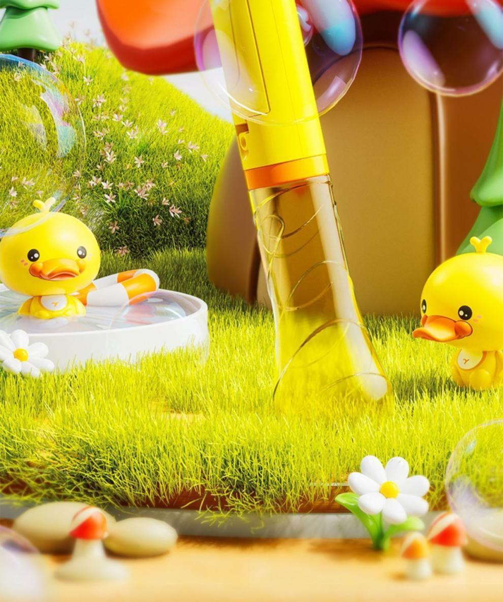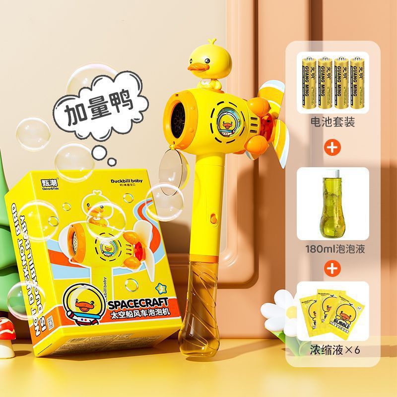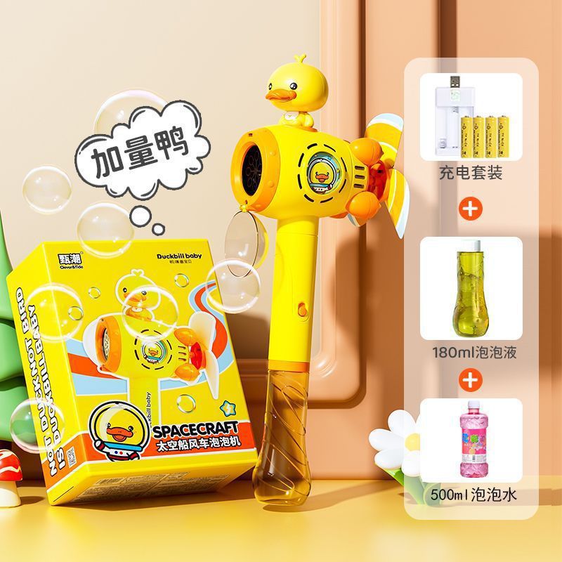 노란색 오리 풍차 버블 머신 어린이 휴대용 완전 자동 전기 새로운 작은 인터넷 연예인 소녀 스틱 버블 배송스토어 가기