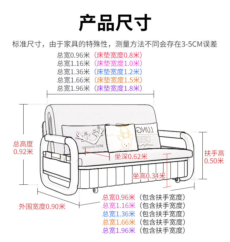 • 전체 폭 0.8m (5CM 스펀지 + 2CM 라텍스) + 수납