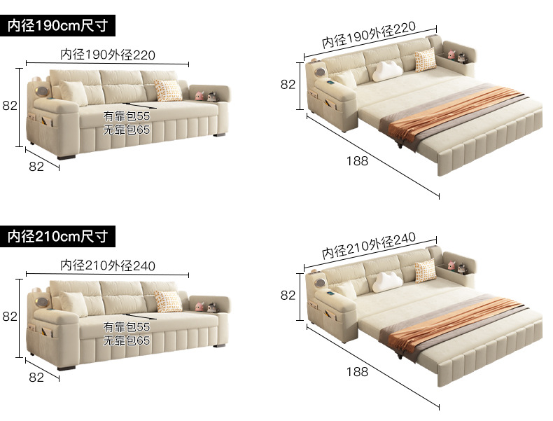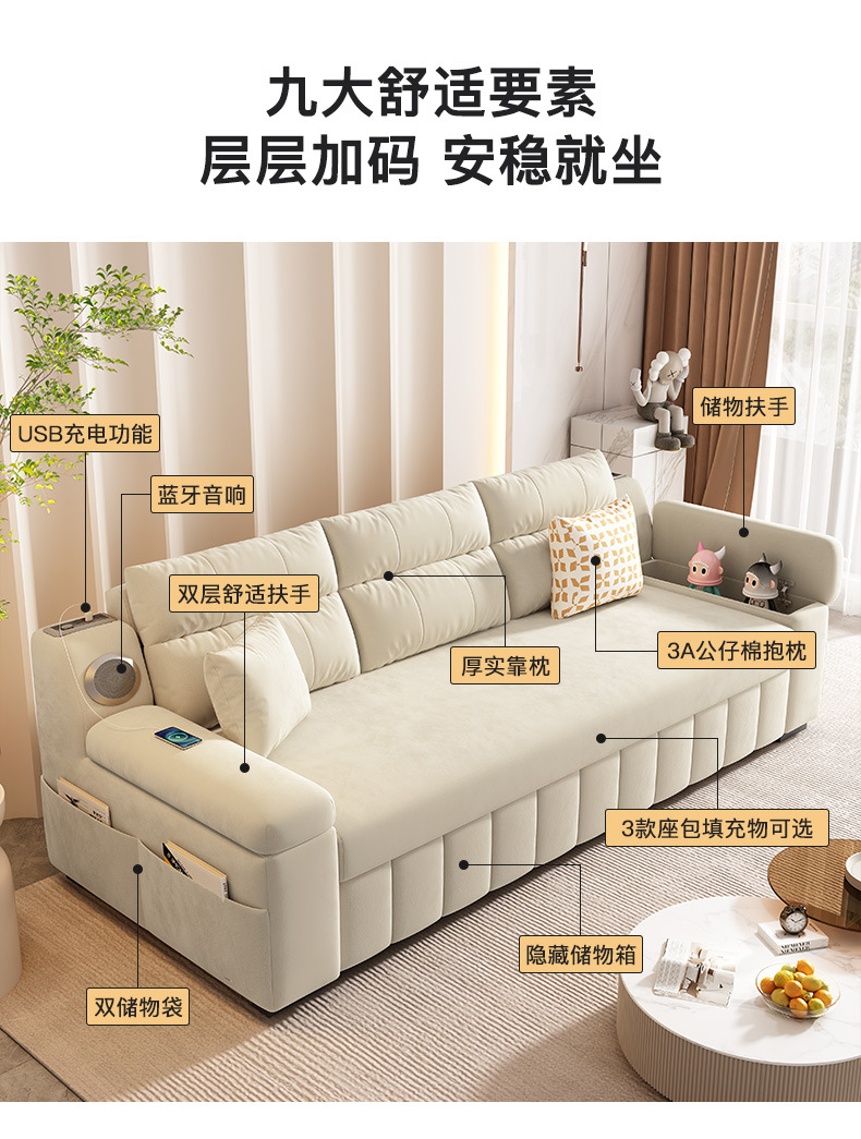 Foshan 가구 소파 침대 기술 벨벳 개폐식 접이식 소파 침대 이중 목적 다기능 소파 침대 작은 아파트 거실