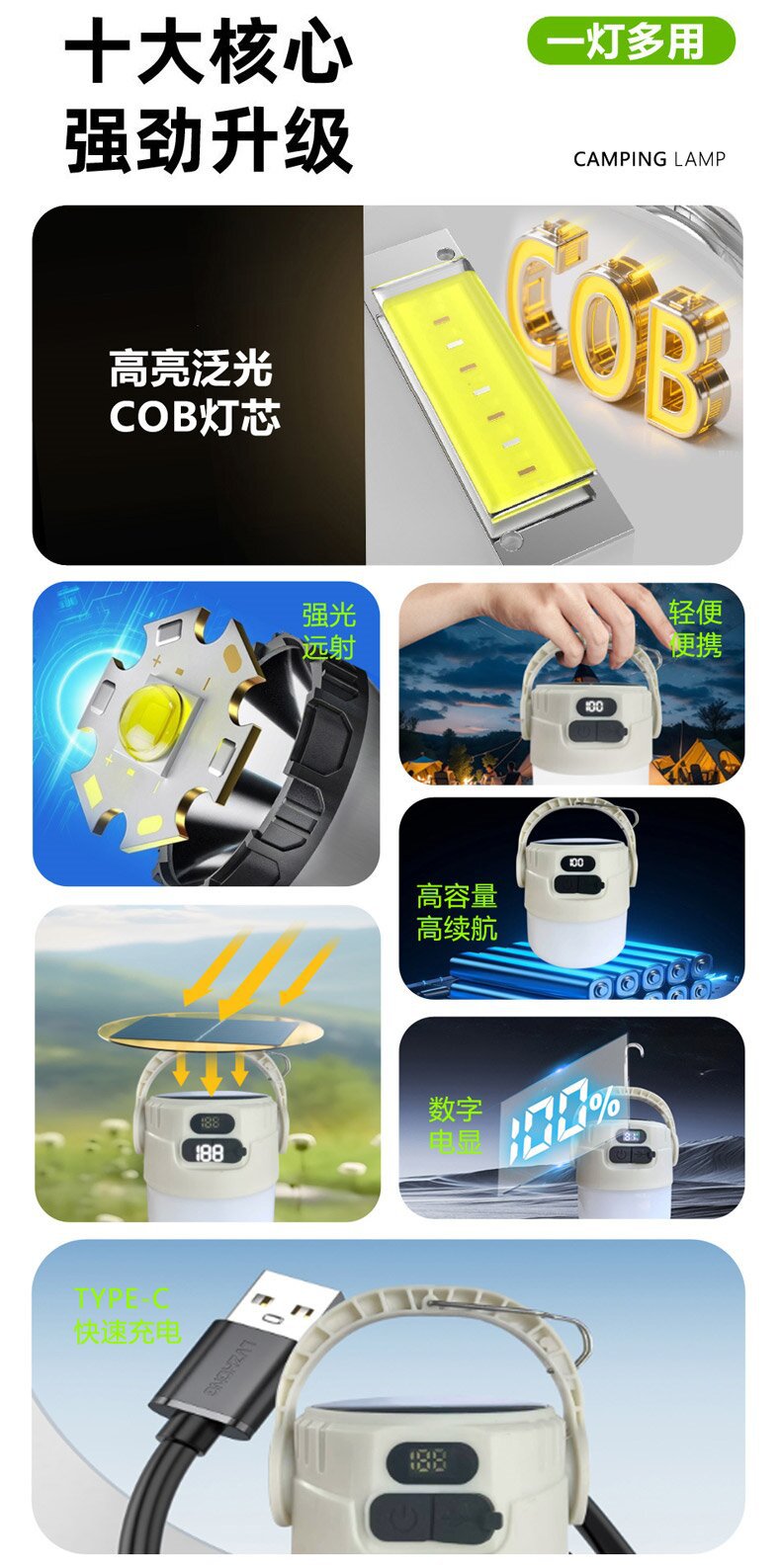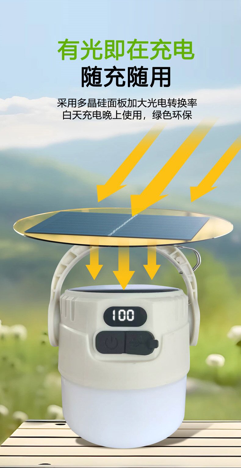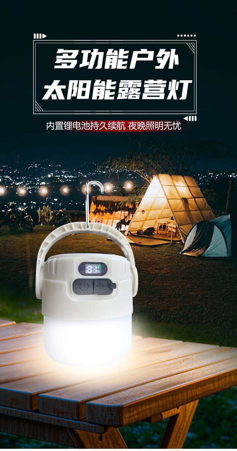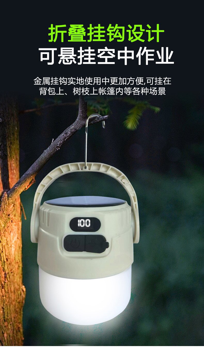 야외 이중 광원 태양 캠핑 충전 텐트 홈 비상 조명 캠핑 충전식 조명 스톨스토어 가기
