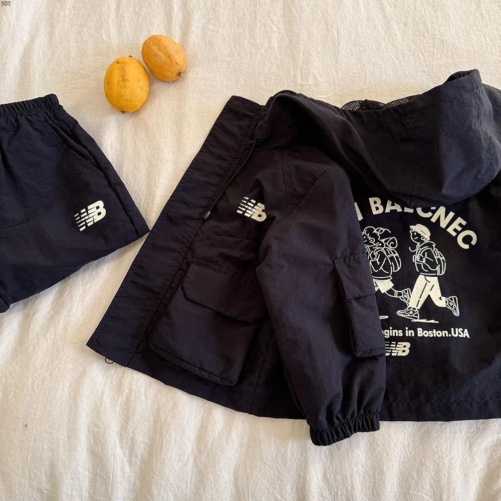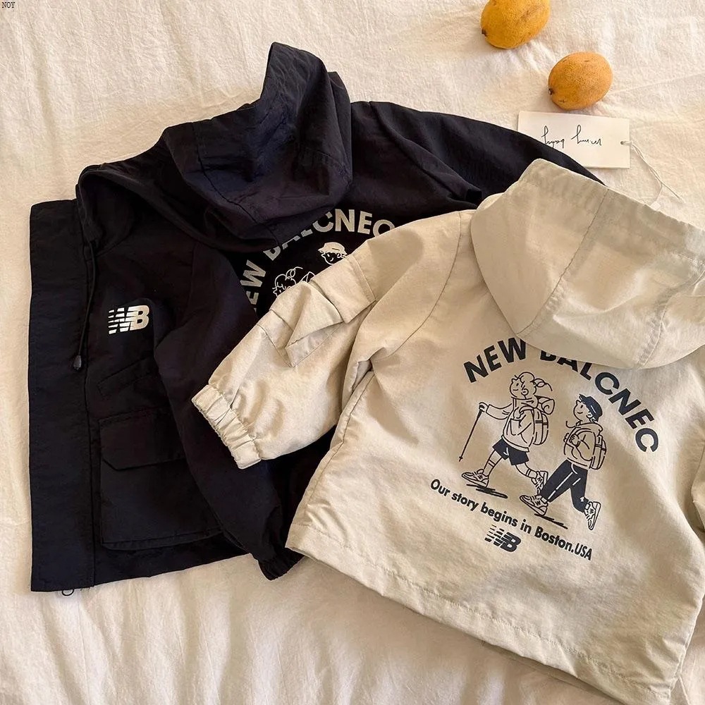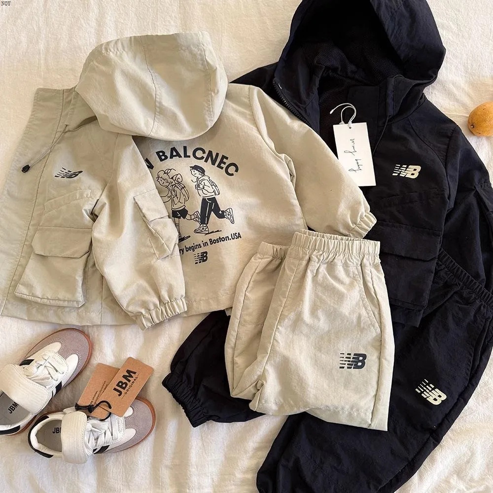 아동용 후드 재킷 정장 남성용 봄, 가을 아동용 작업복 재킷 레터링 베이비 봄 투피스 세트 서양식스토어 가기