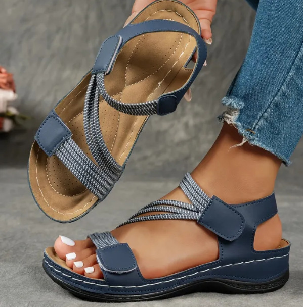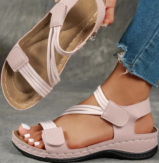 새로운 2025 유럽과 미국 샌들 여성 국경 간 대외 무역 대형 스티치 웨지 캐주얼 벨크로 샌들 도매스토어 가기
